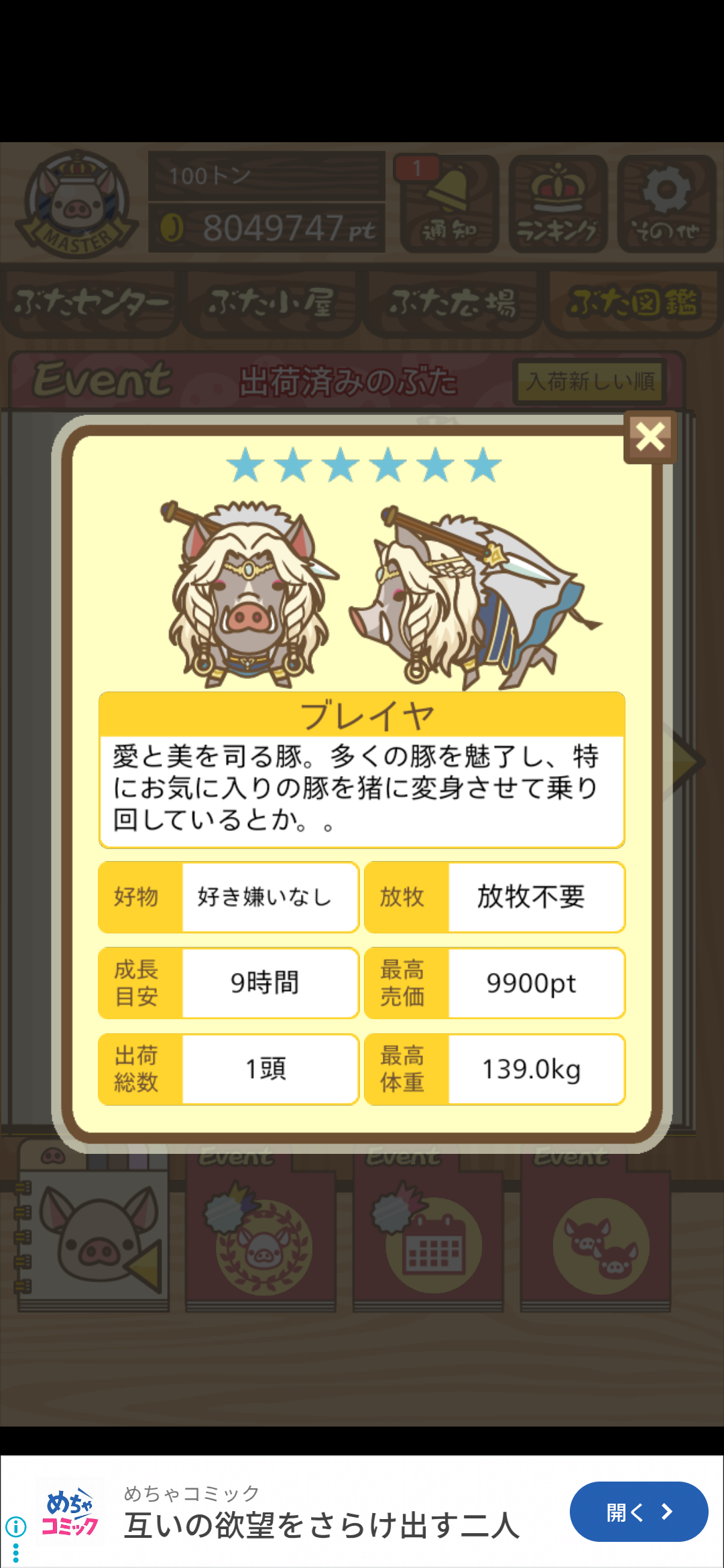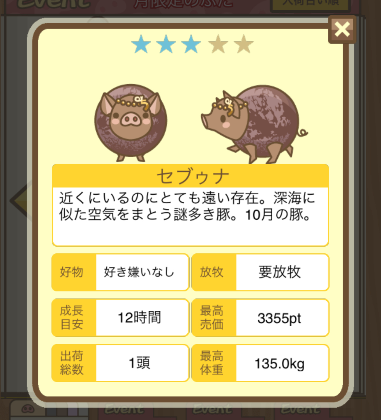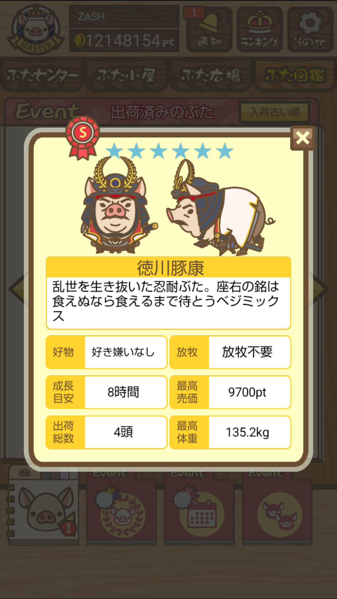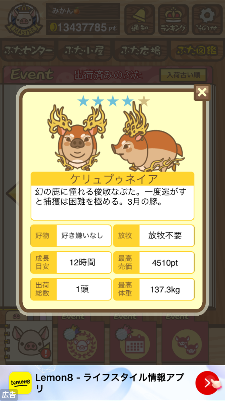 イベントハントぶた図鑑 や 伝説のイベントハント のページに情報があります。