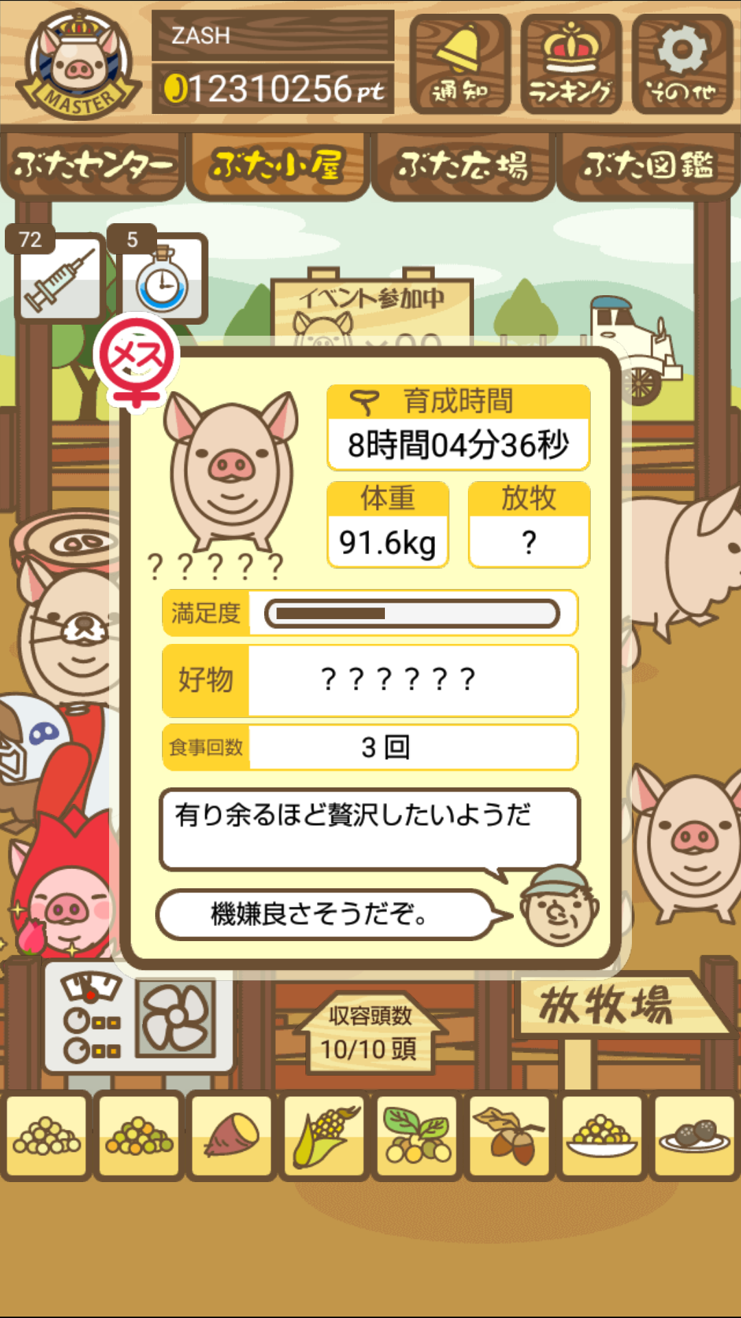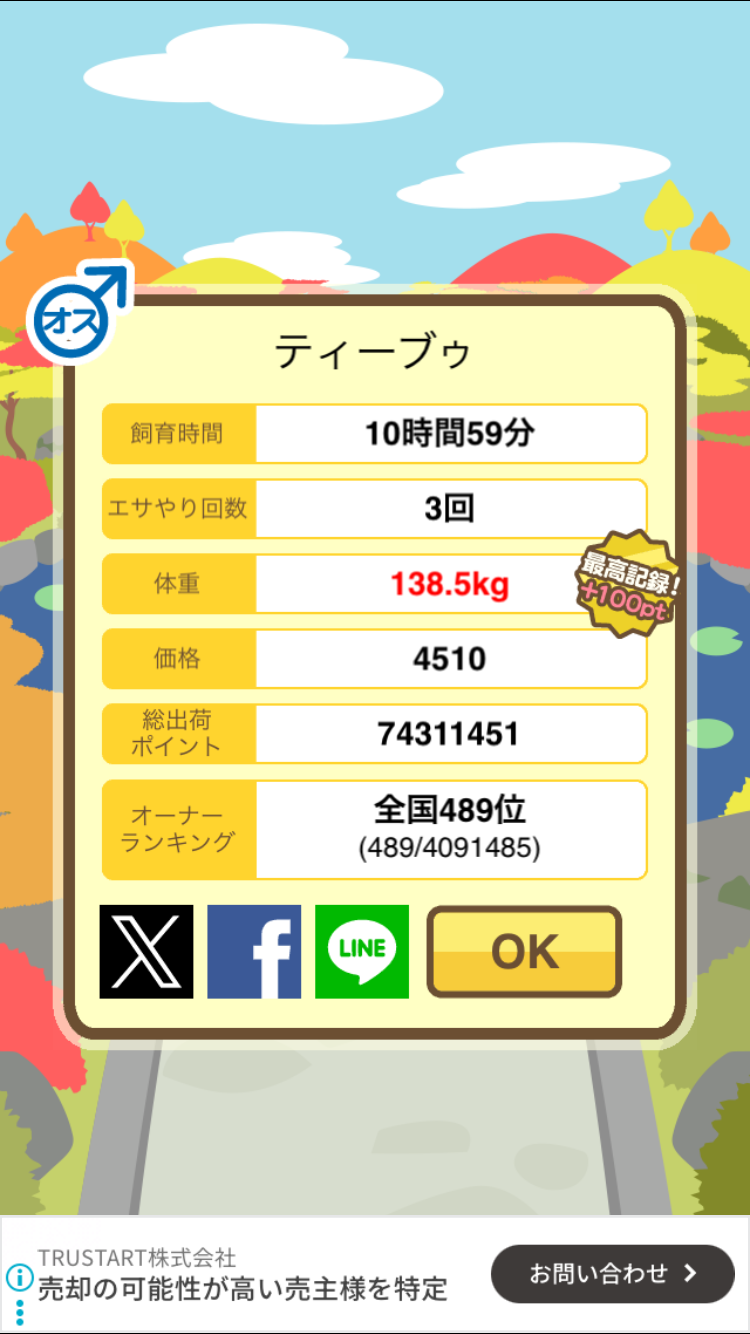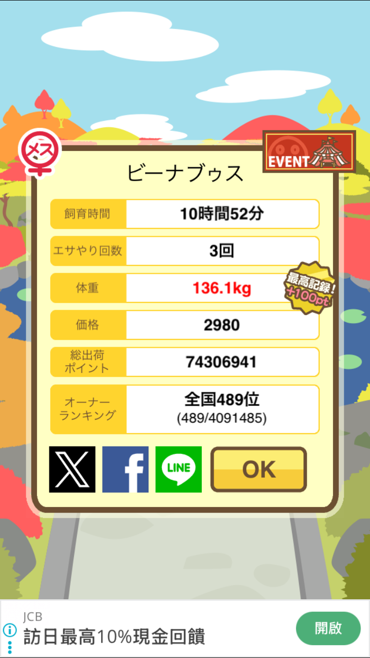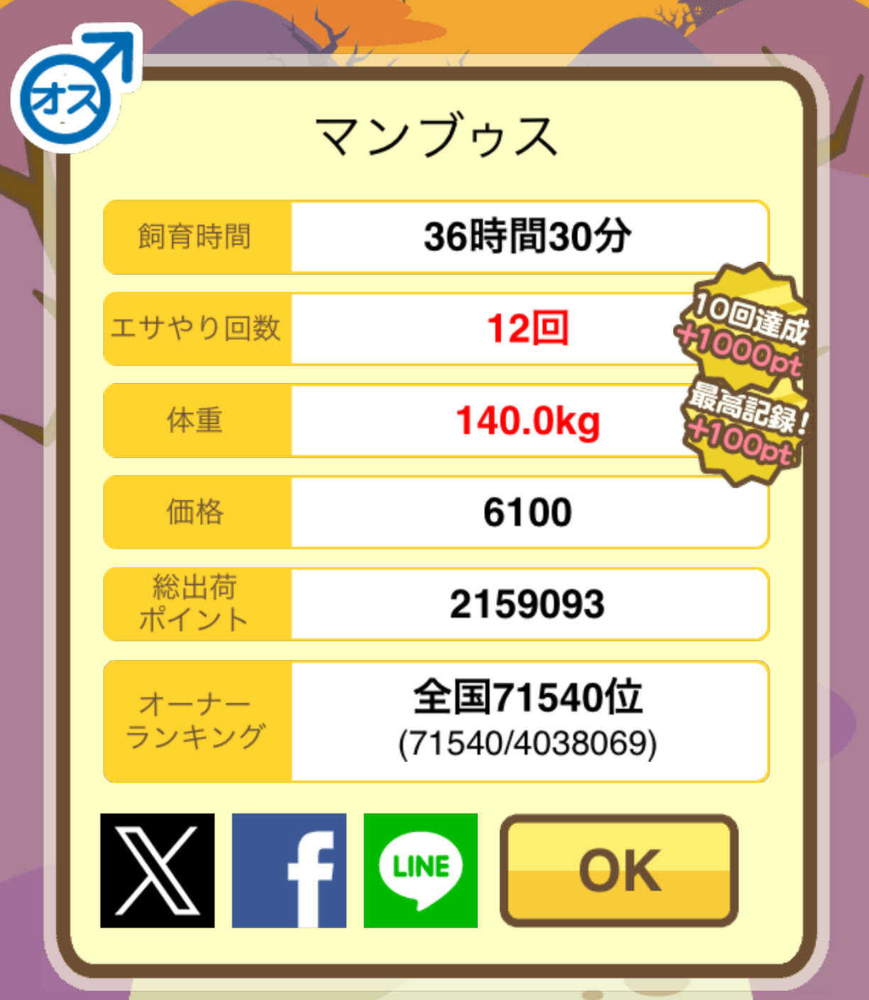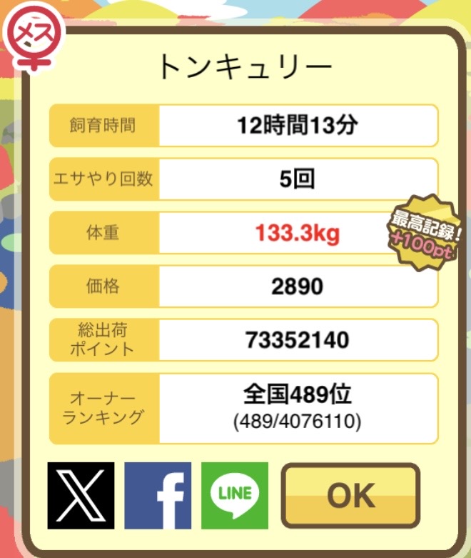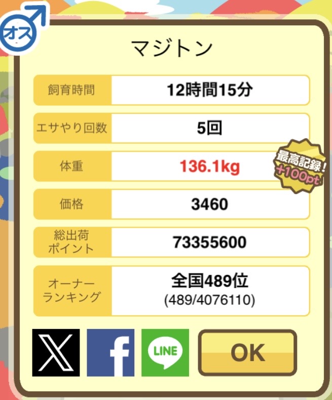 もスクショでご報告頂けると大変助かります。(エサ回数の情報が必要なため)