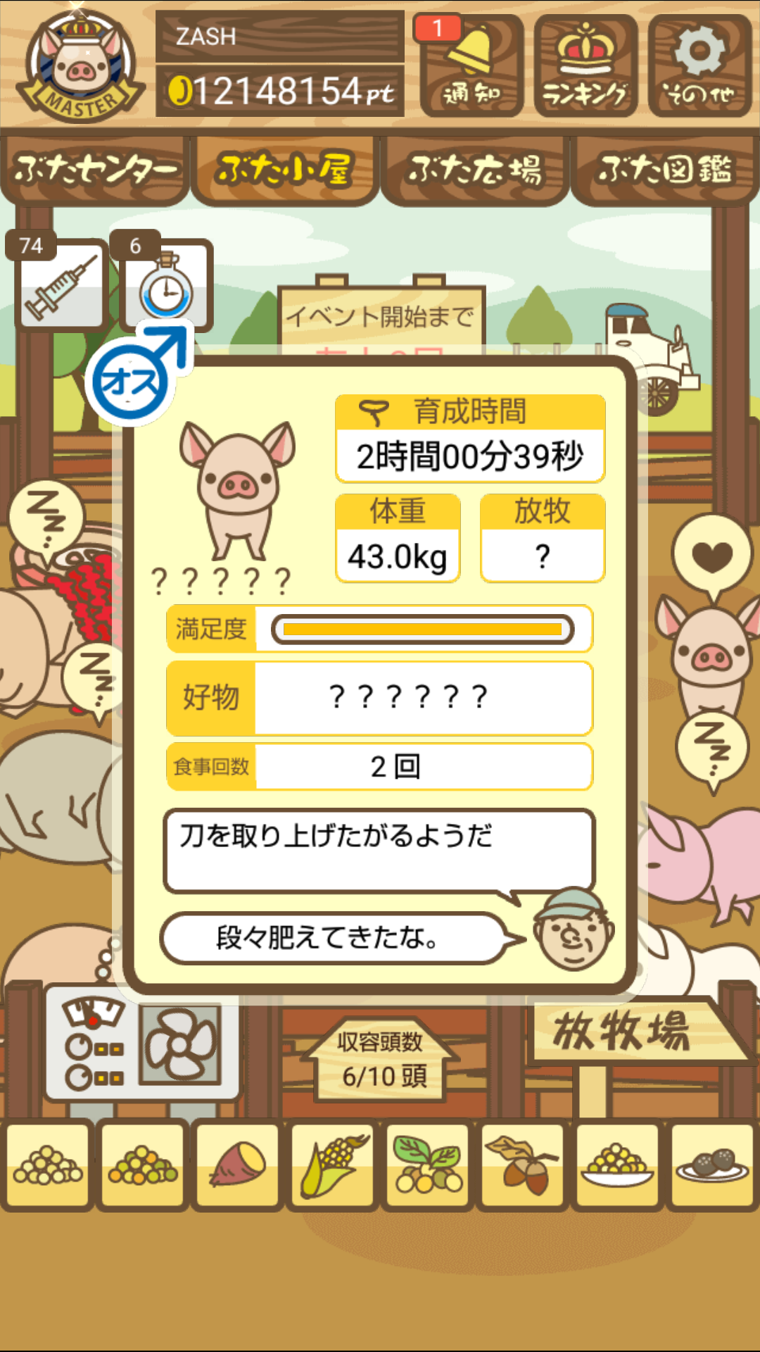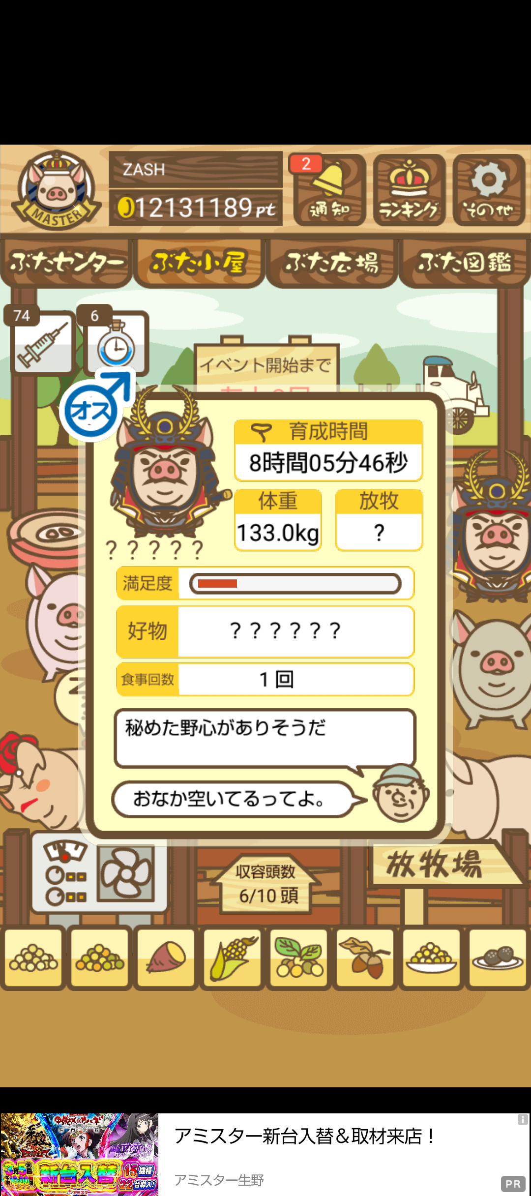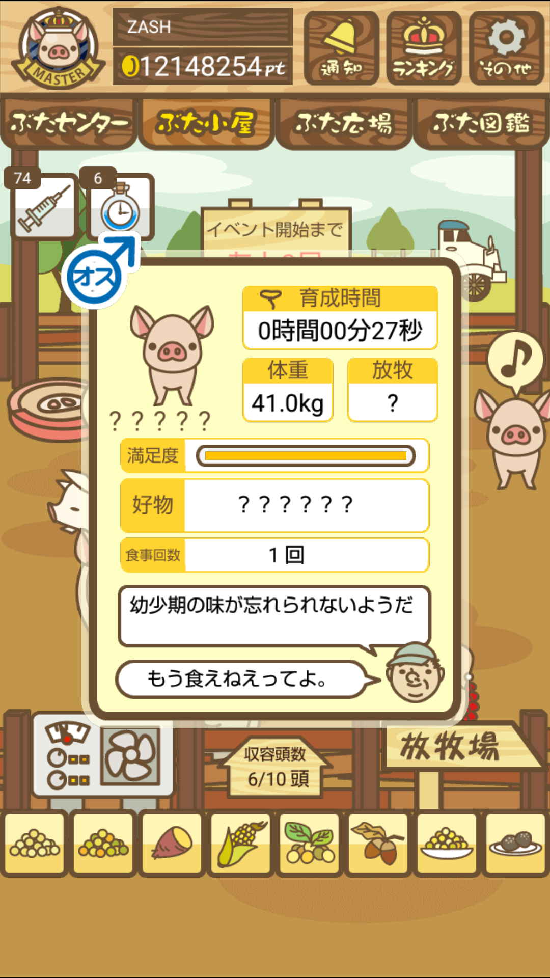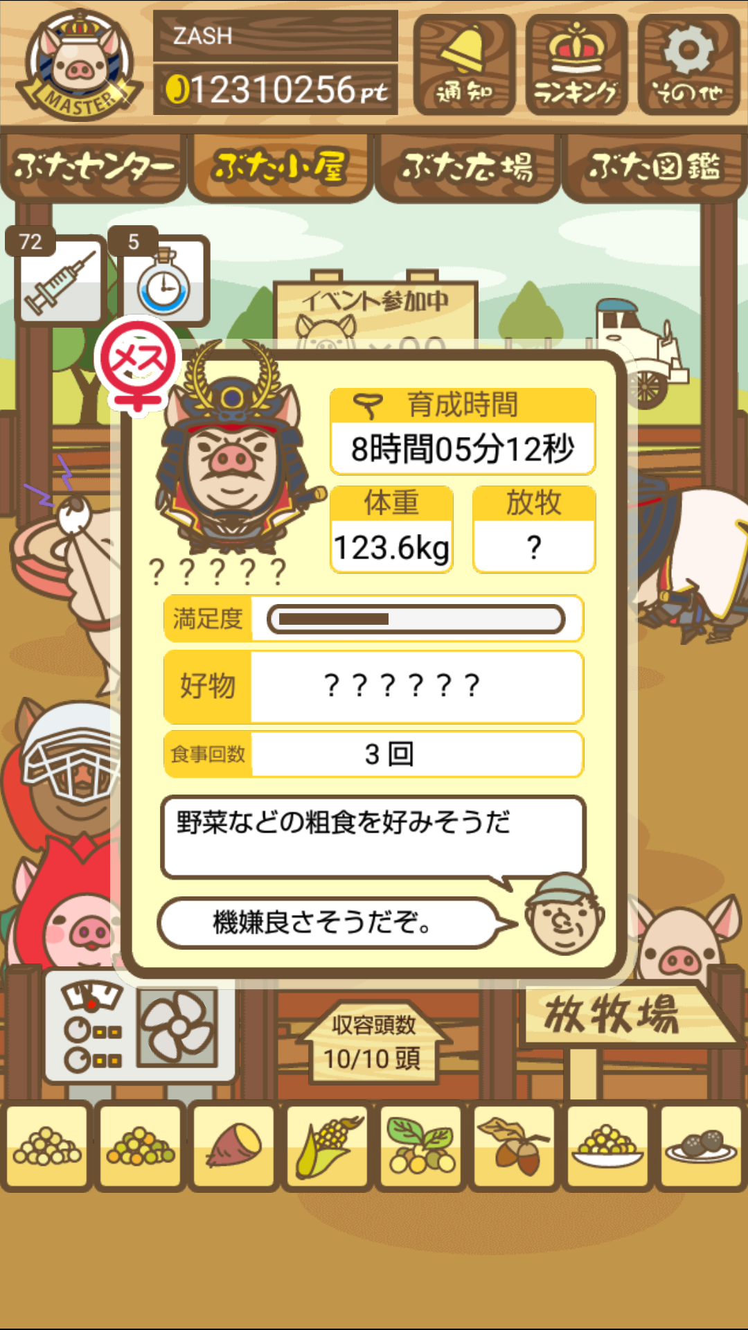 もスクショでご報告頂けると大変助かります。(エサ回数の情報が必要なため)