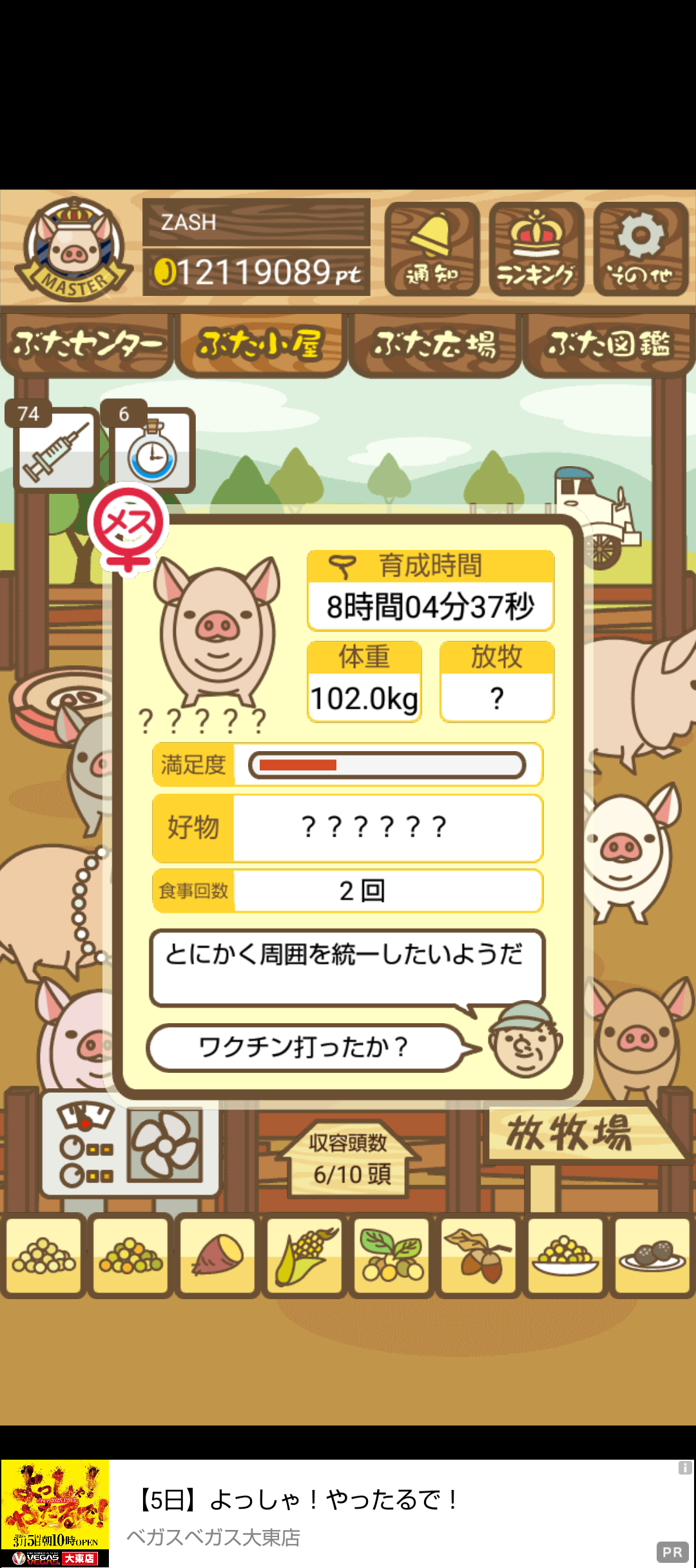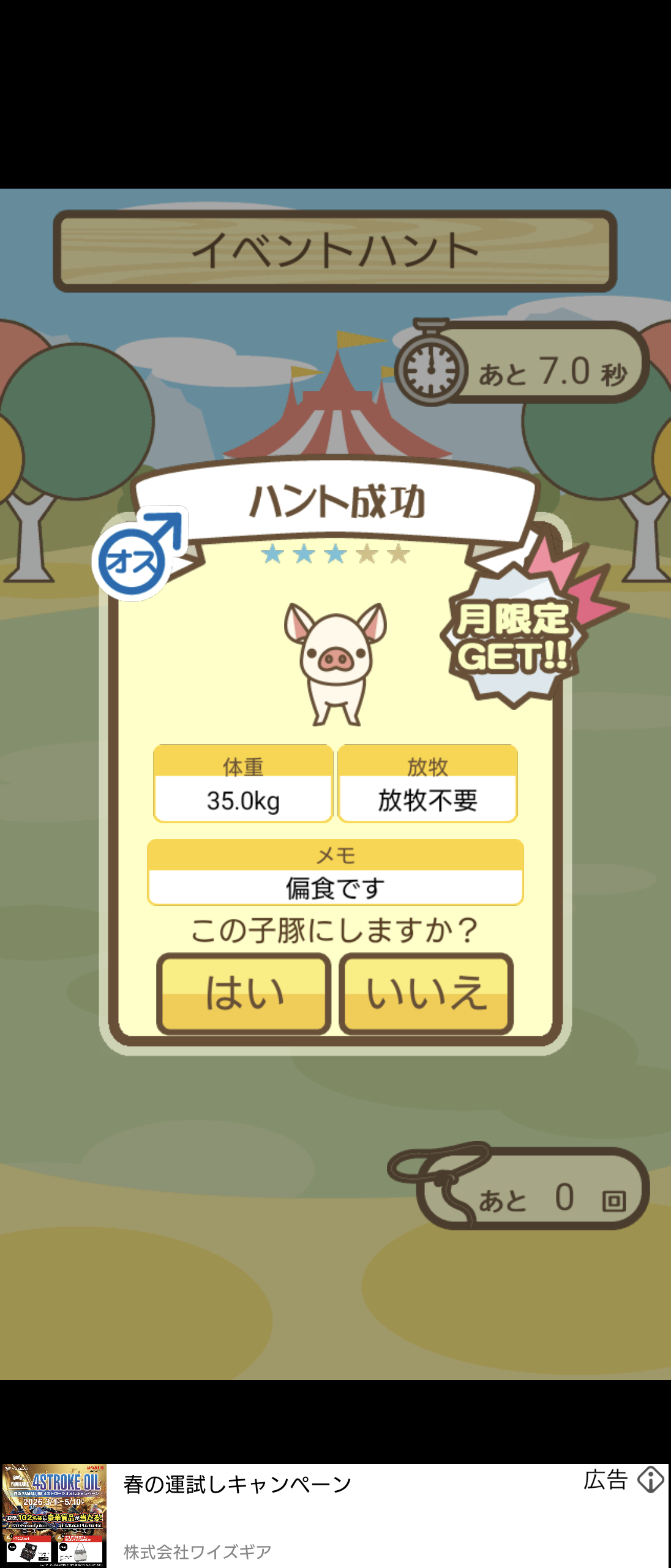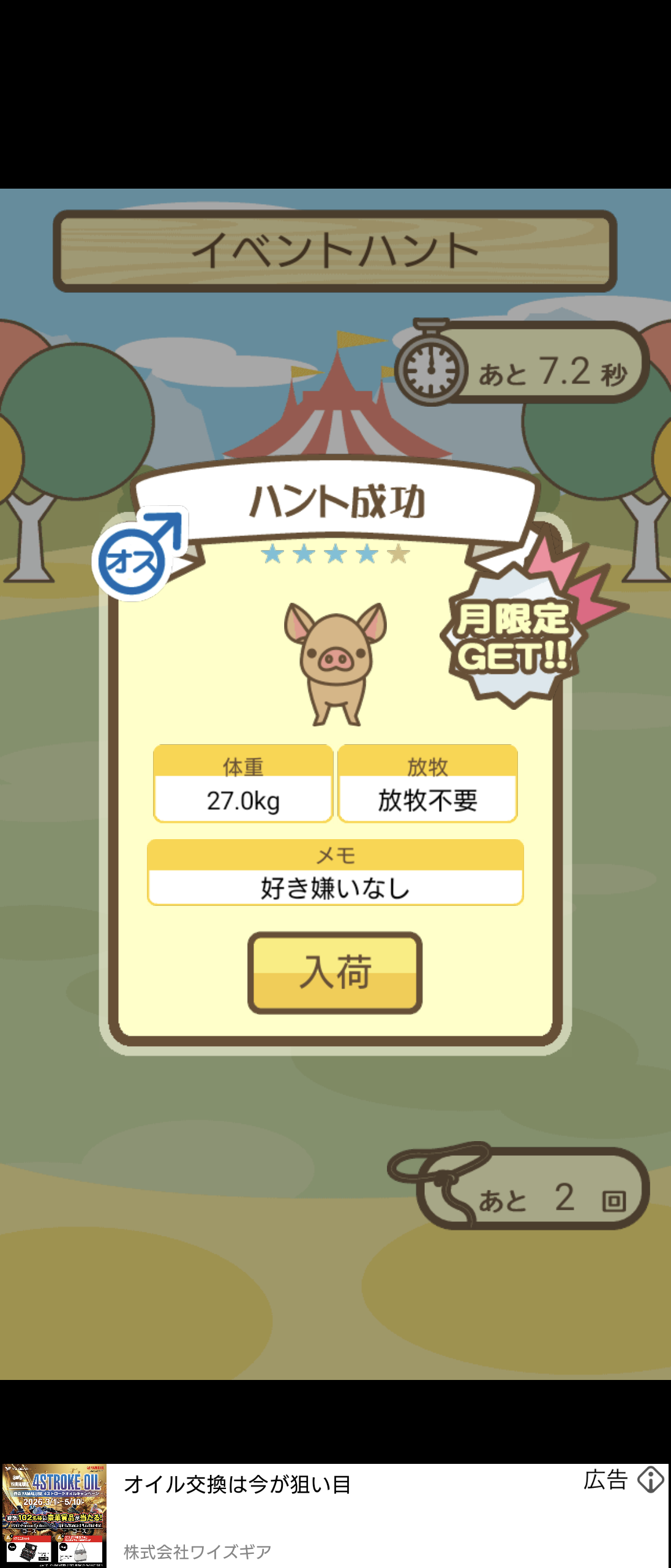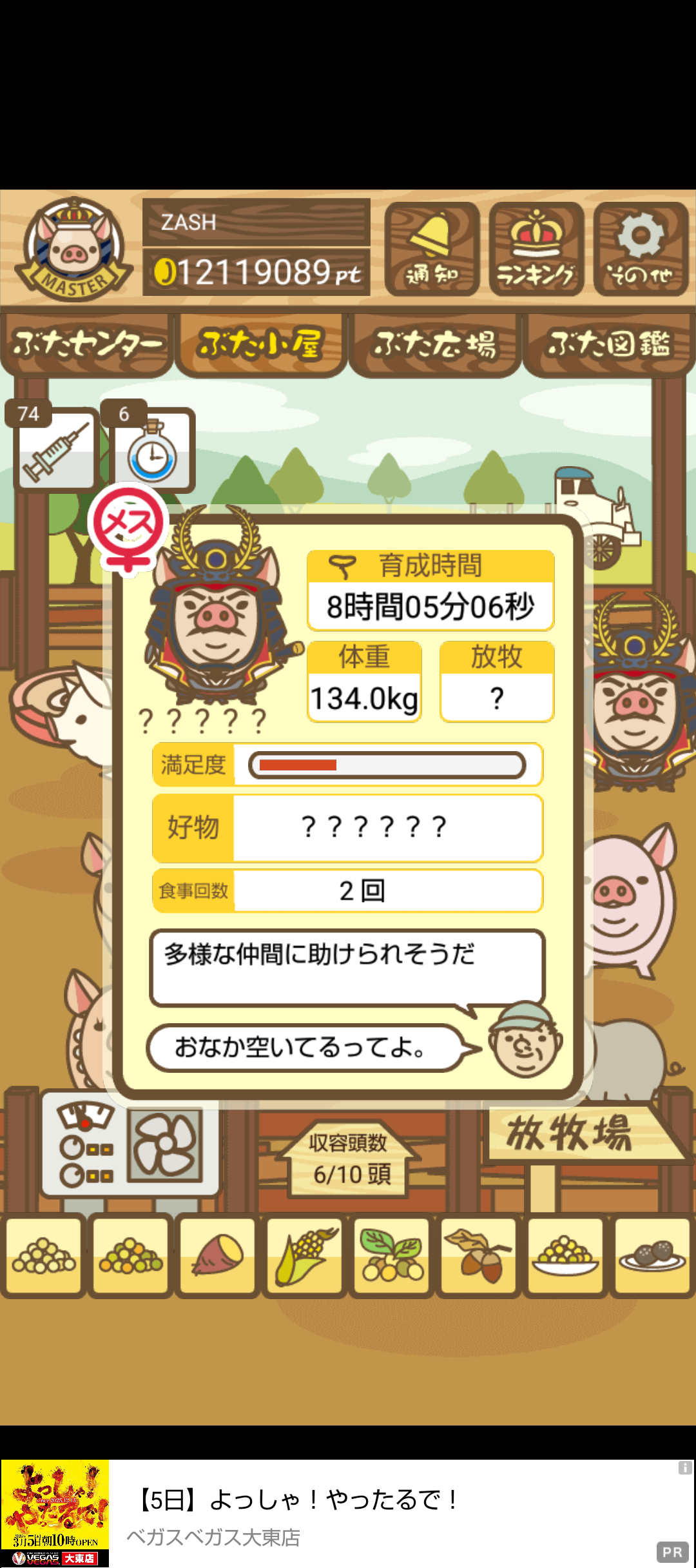 もスクショでご報告頂けると大変助かります。(エサ回数の情報が必要なため)