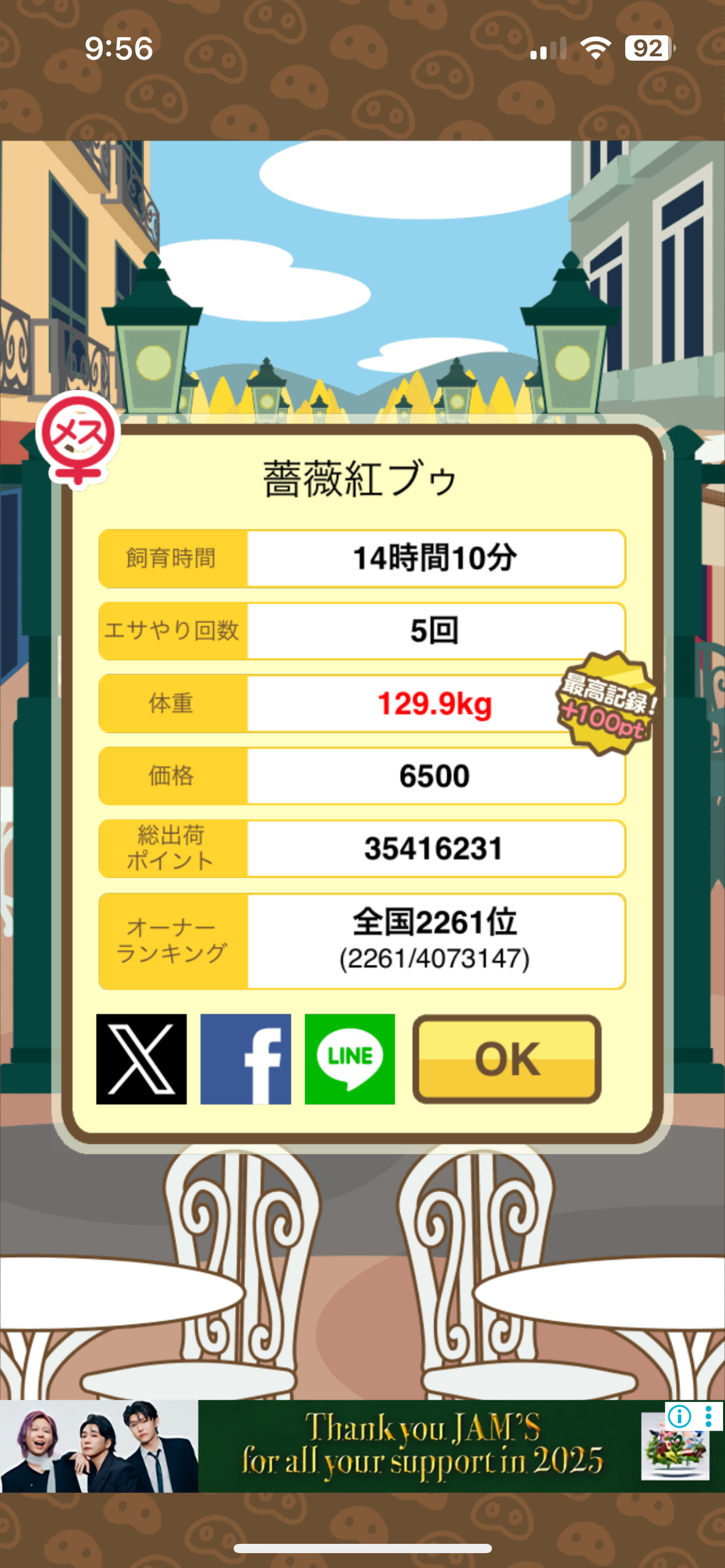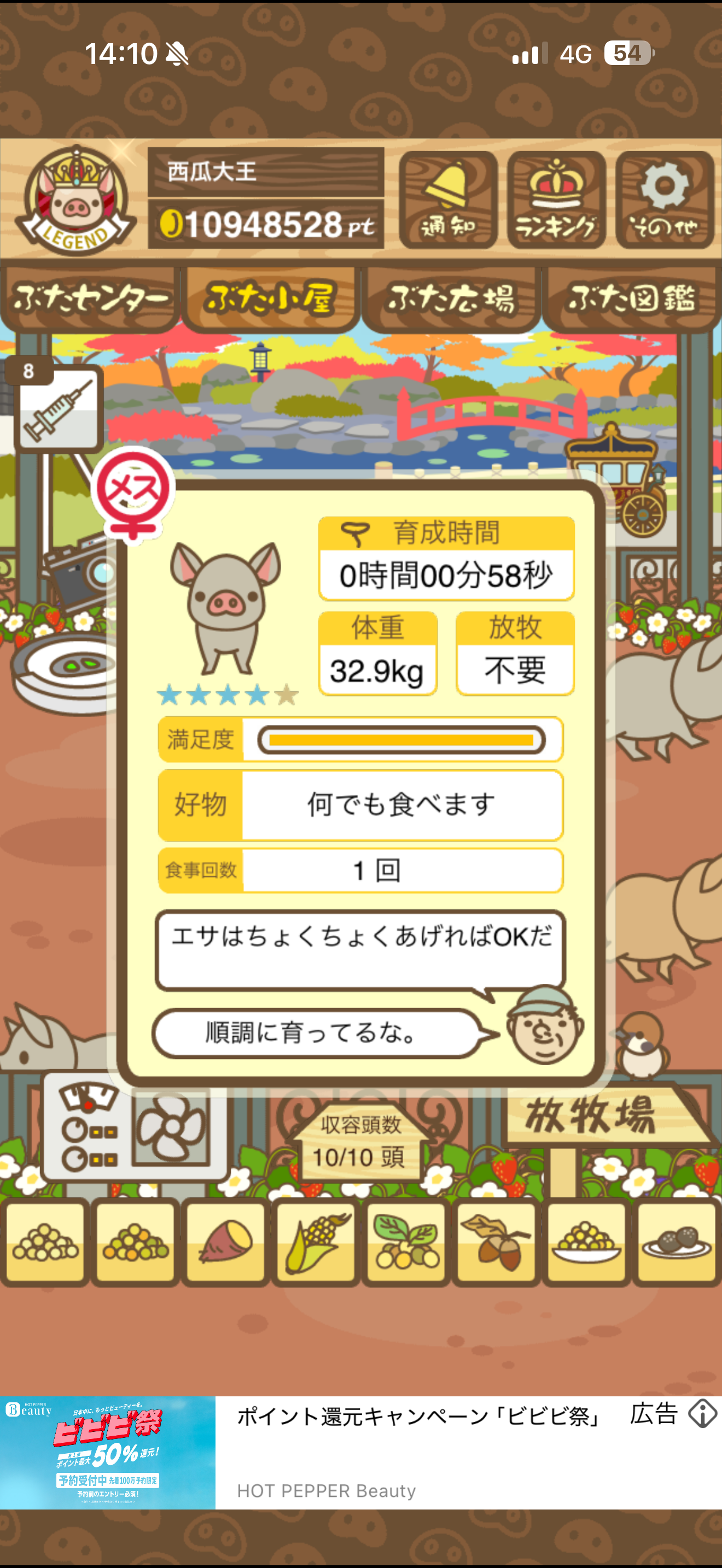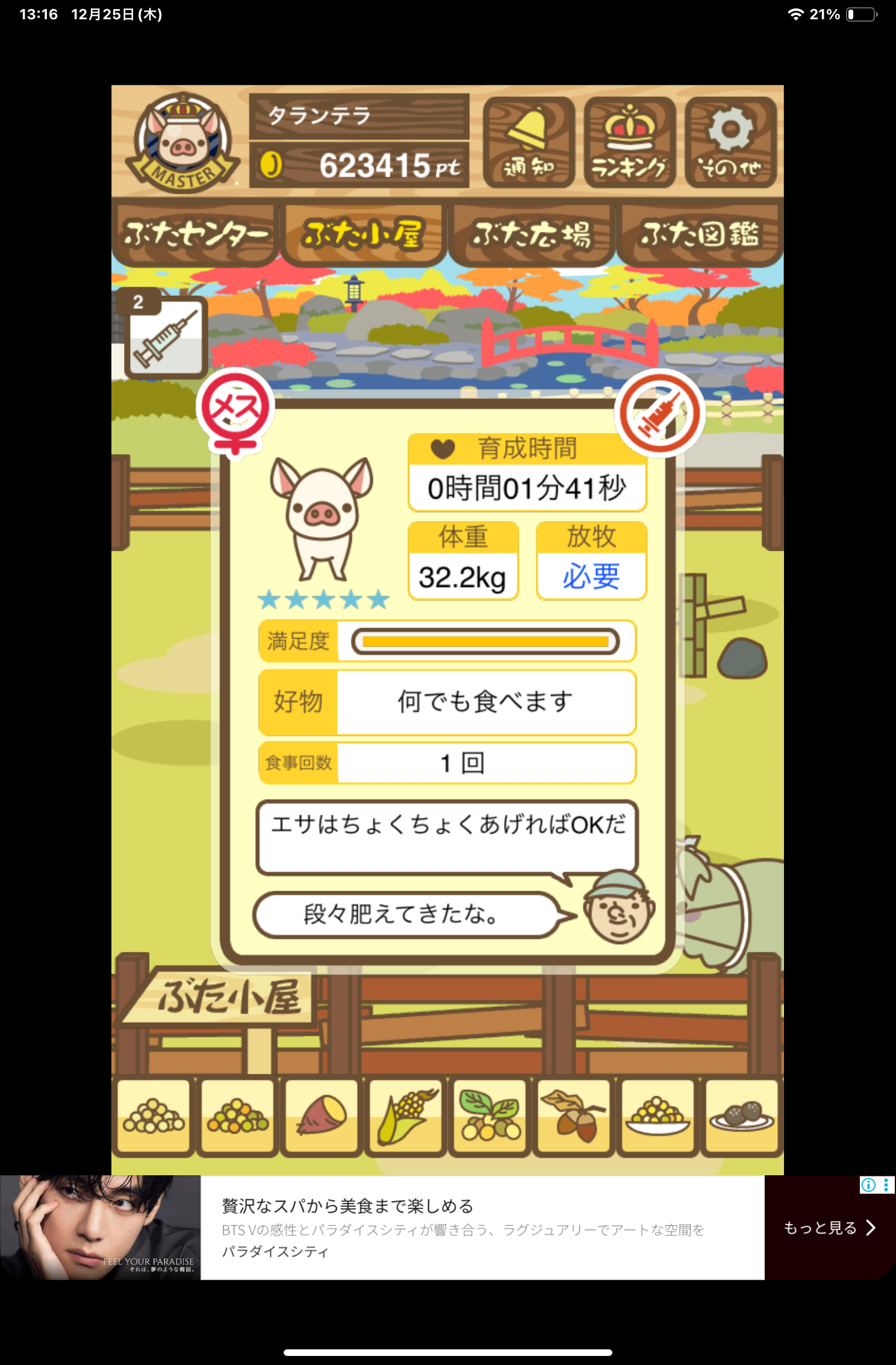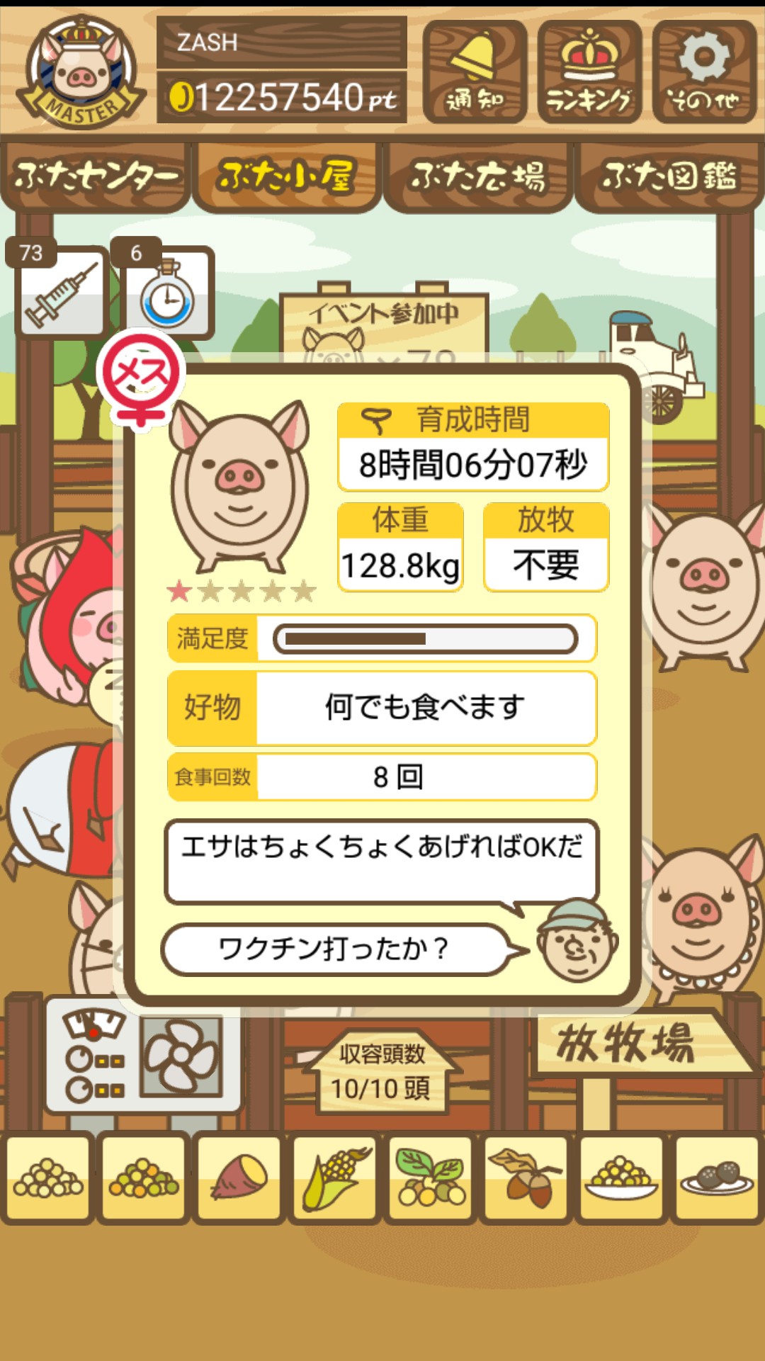 もスクショでご報告頂けると大変助かります。(エサ回数の情報が必要なため)