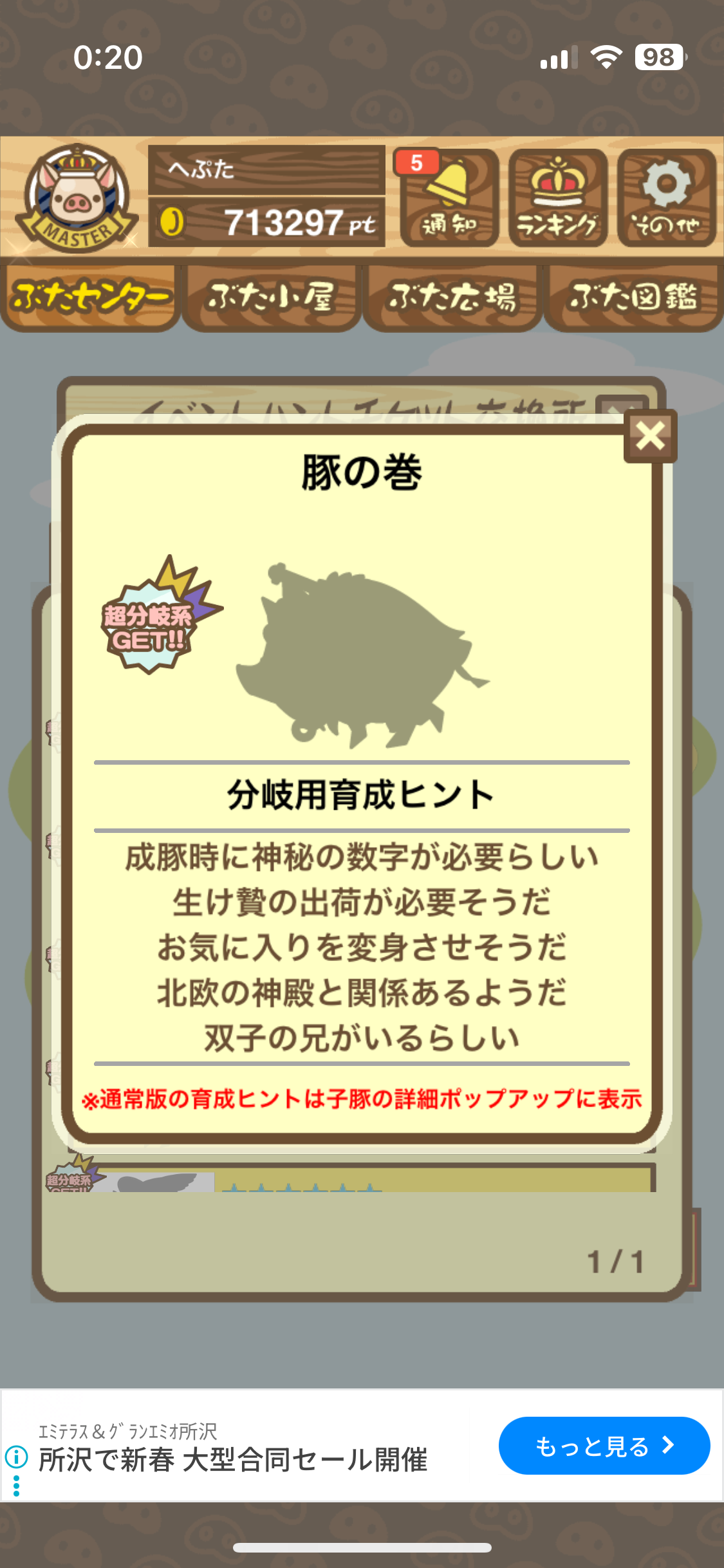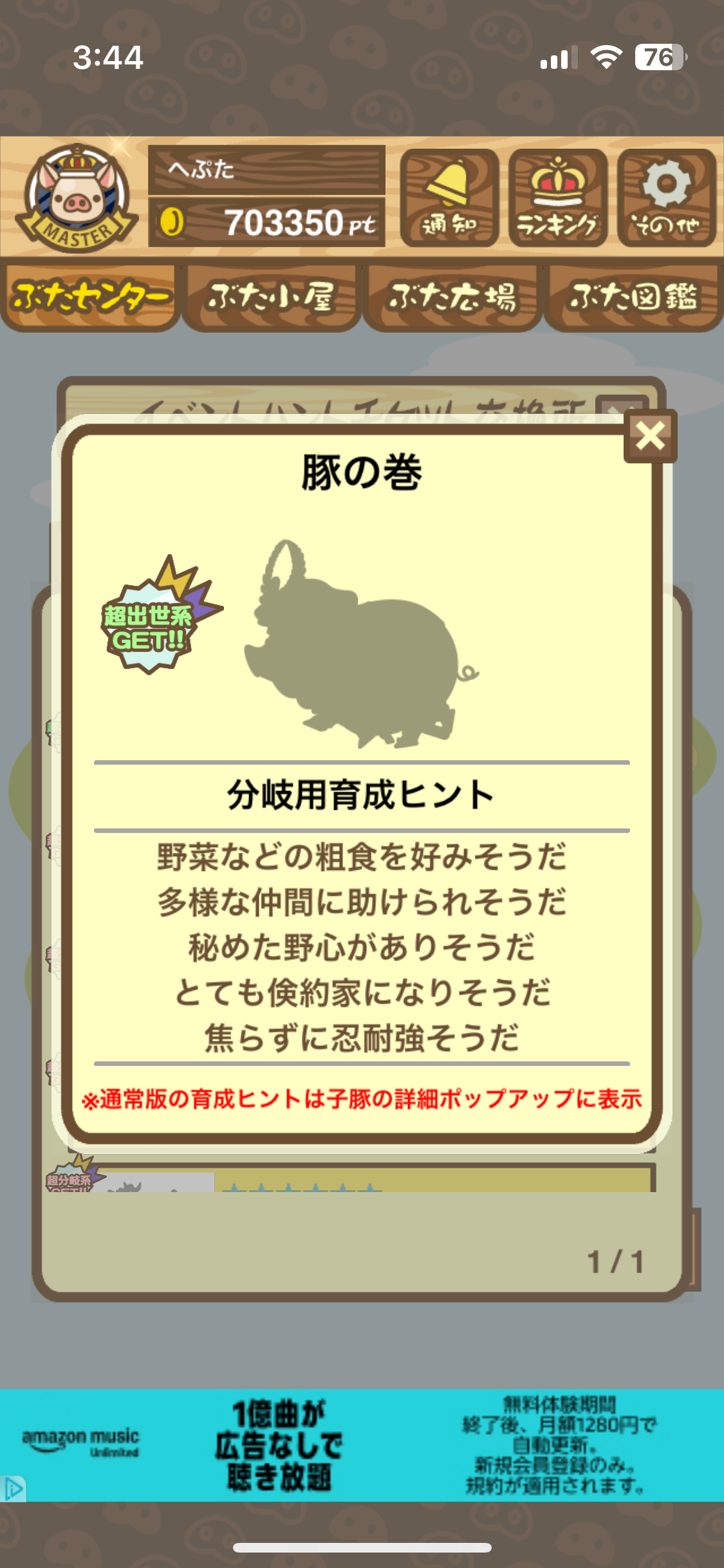 月初めにイベントハントに月限定や一般ぶたなどの新種が追加された際には、
