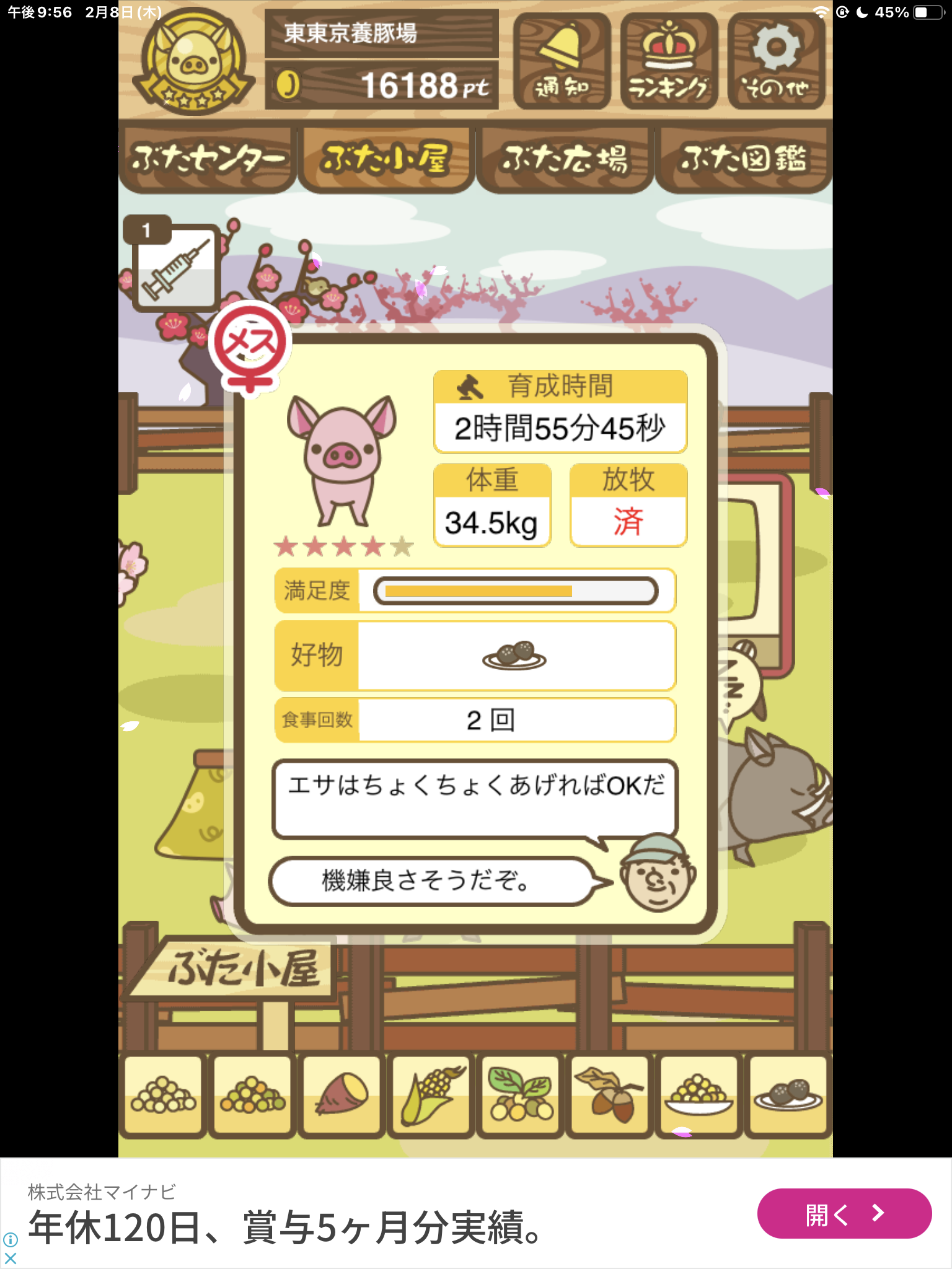 育成は運要素ほぼゼロなので、落ち着いてエサ3種を食べさせよう。