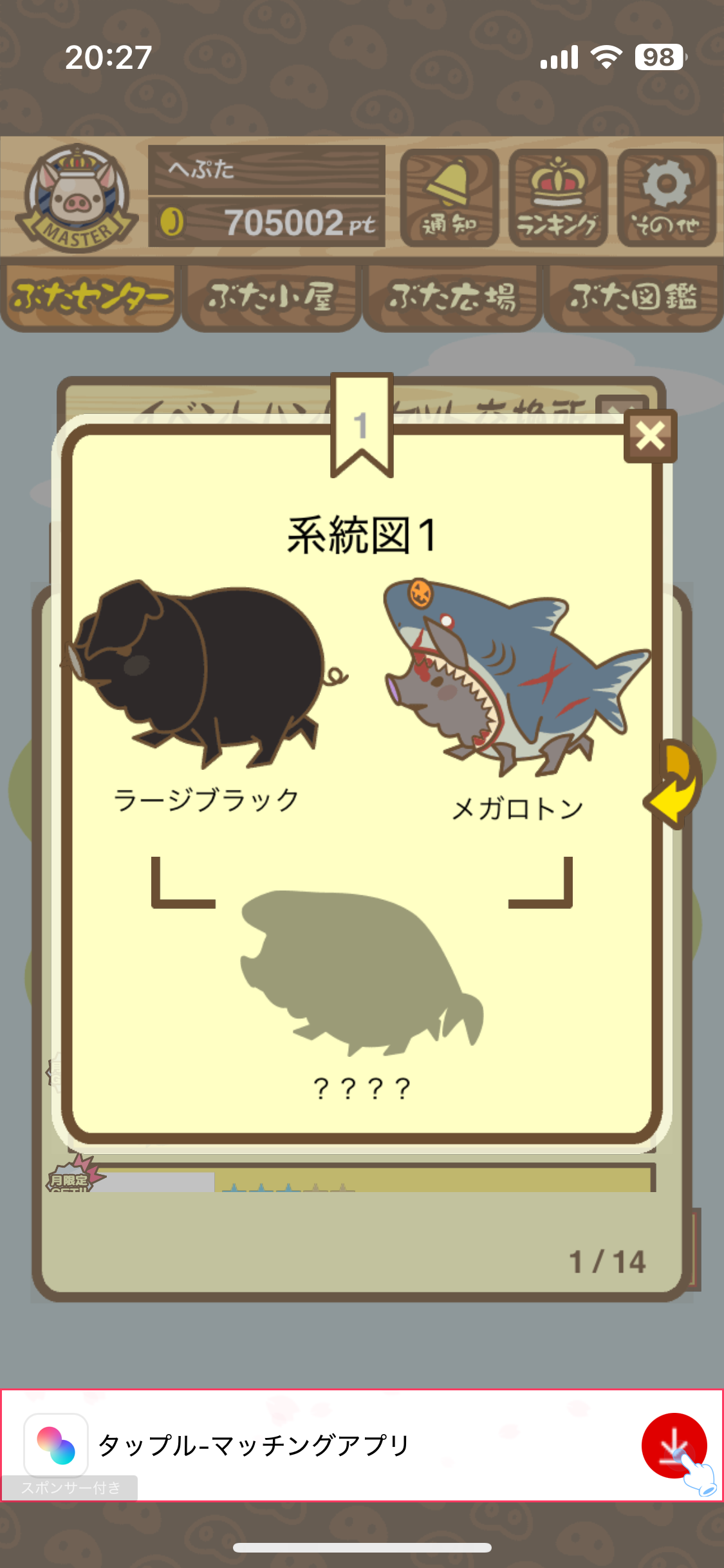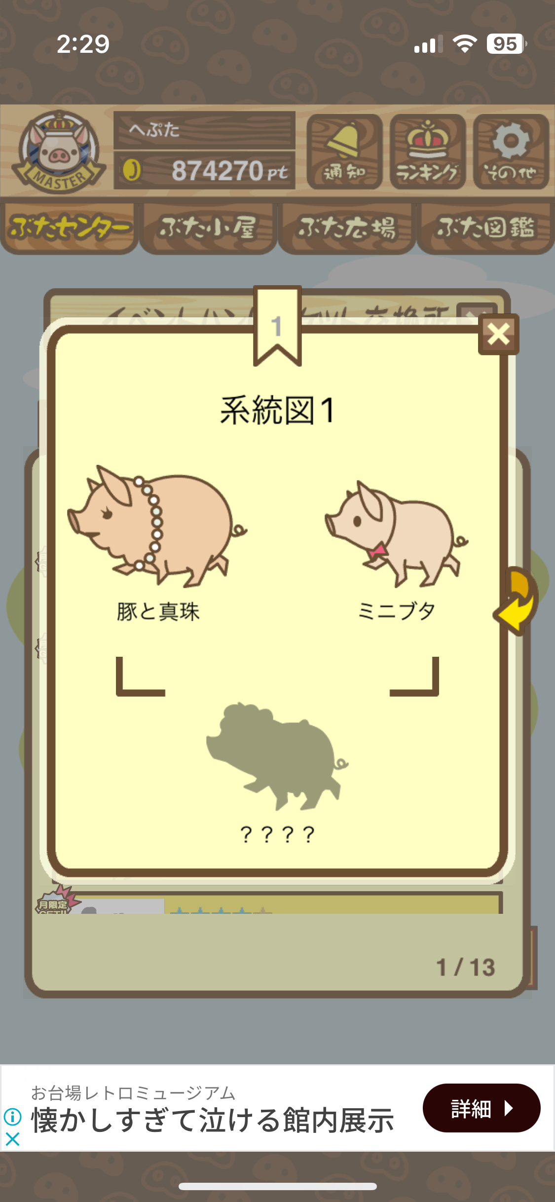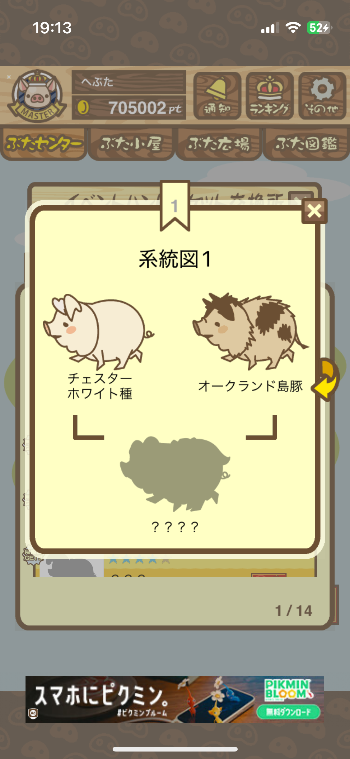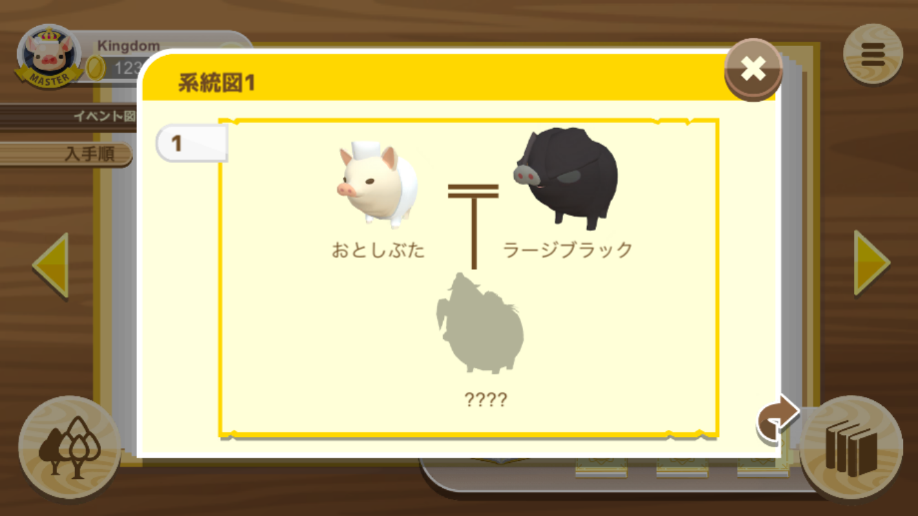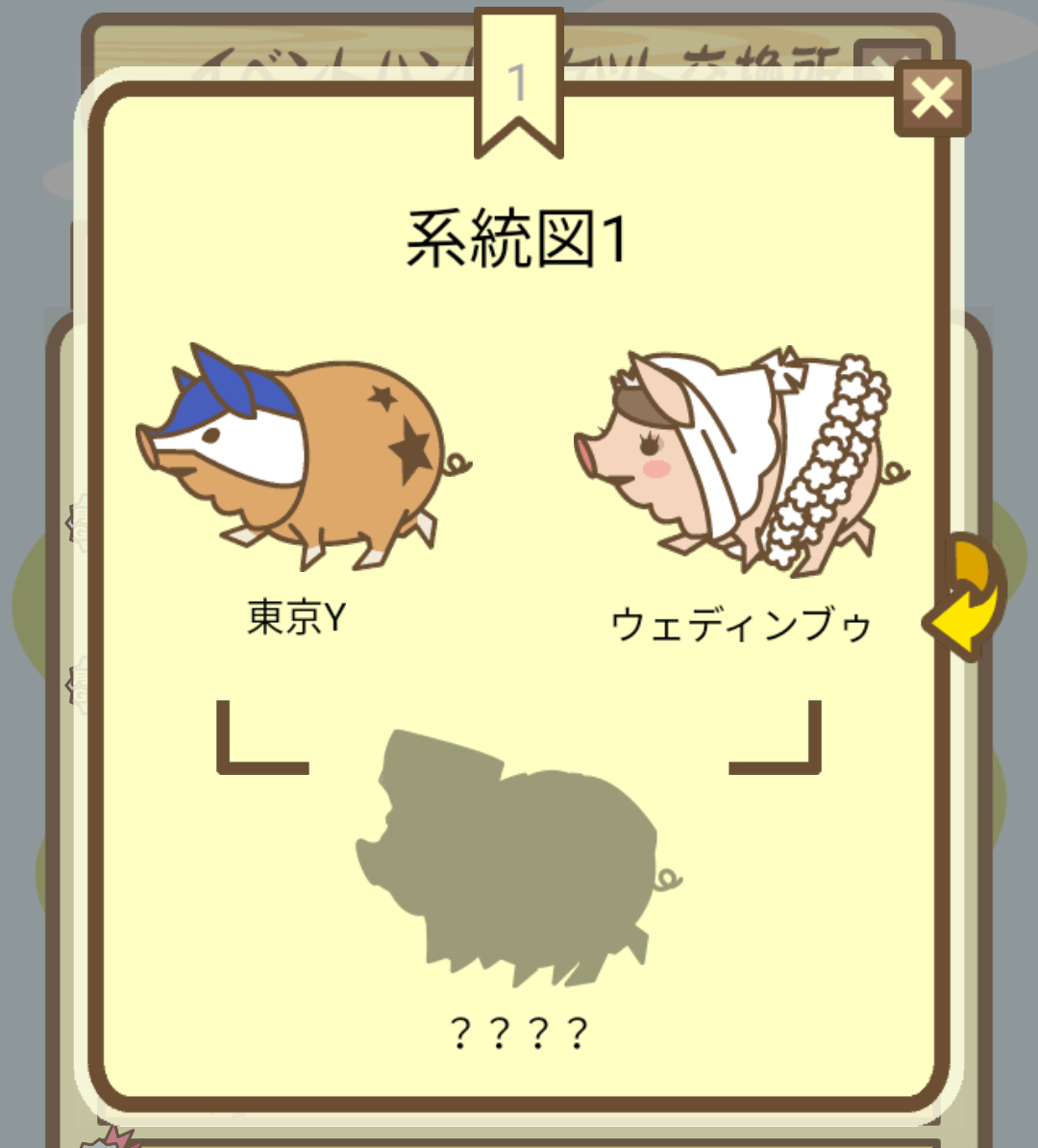 オスとメスをペアにしようとして、雑種ではなくて目的のぶたが表示されたらビンゴ。