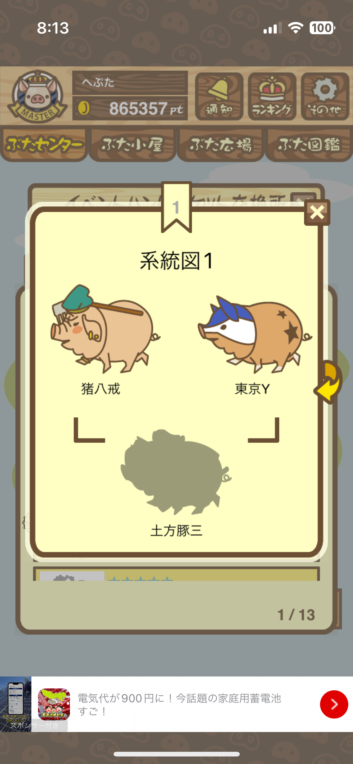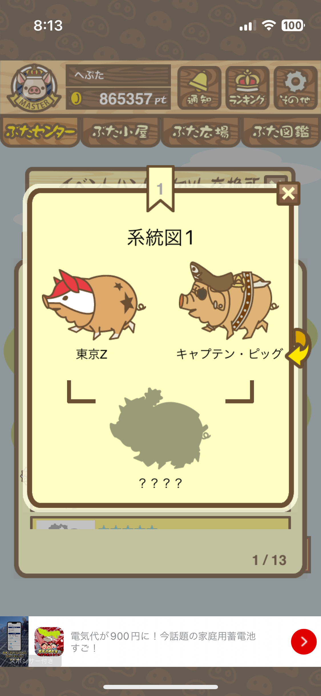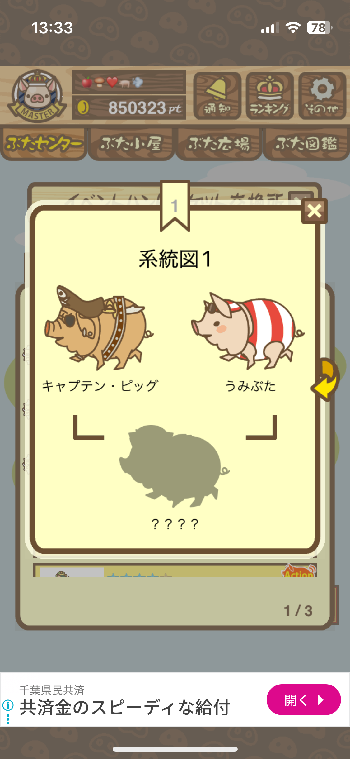 8500pt ピグキオ ⇒ 次男 × 真実の豚