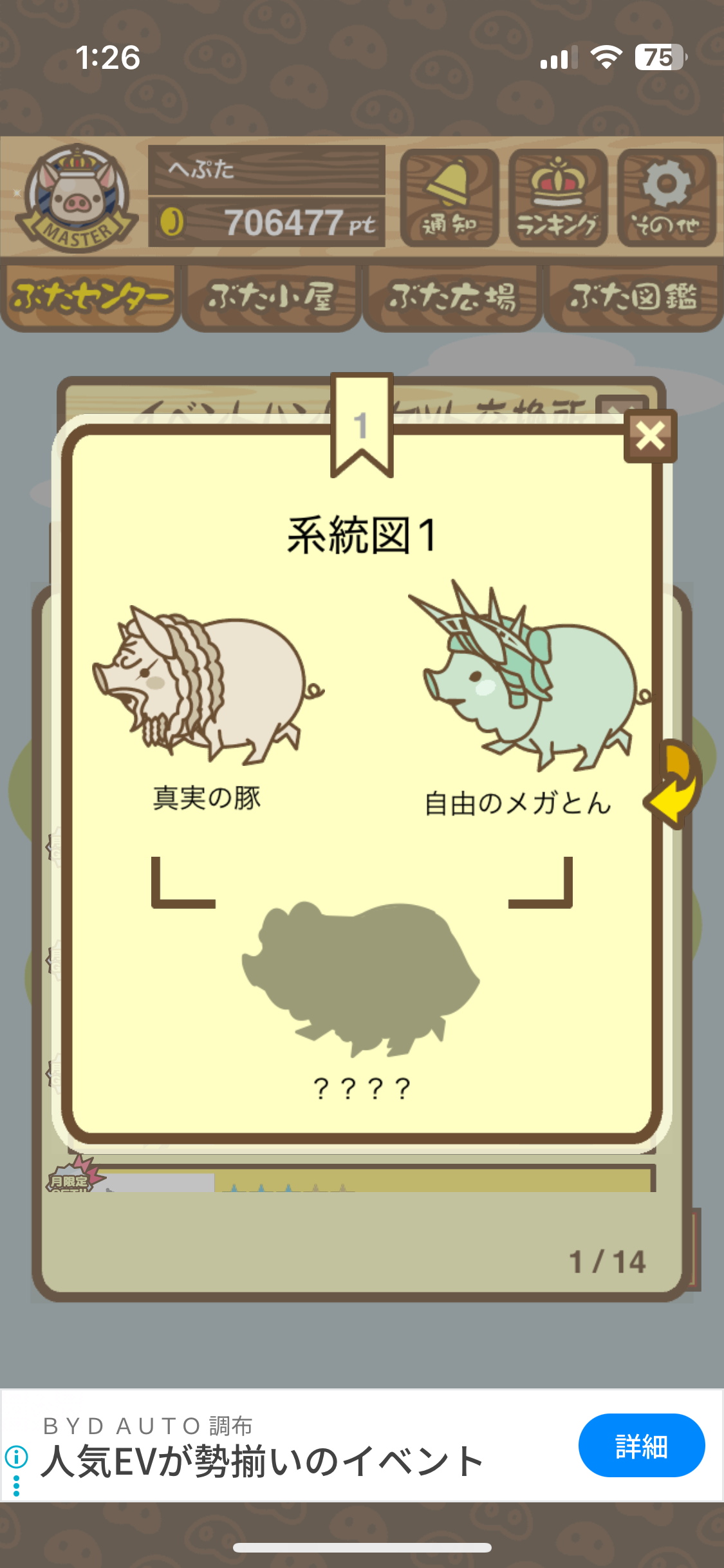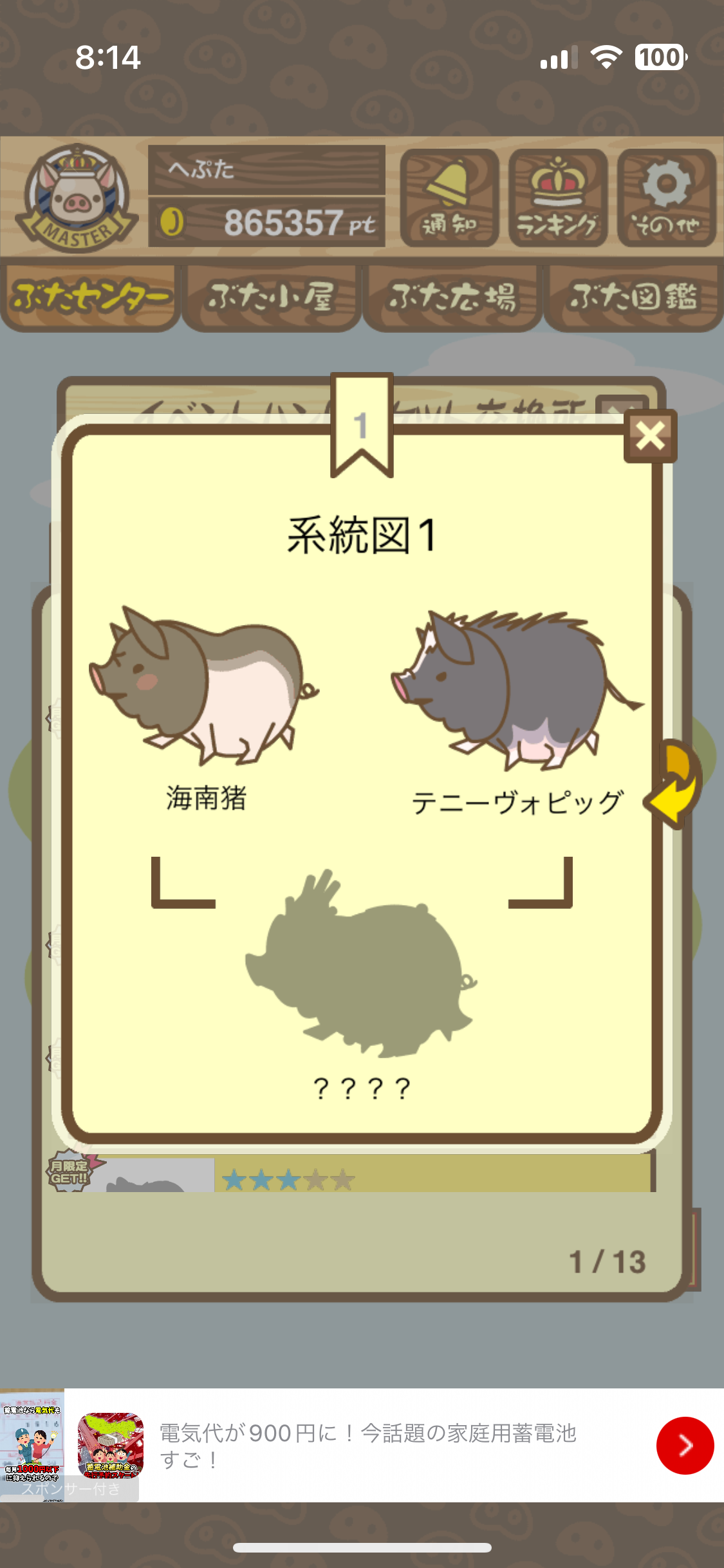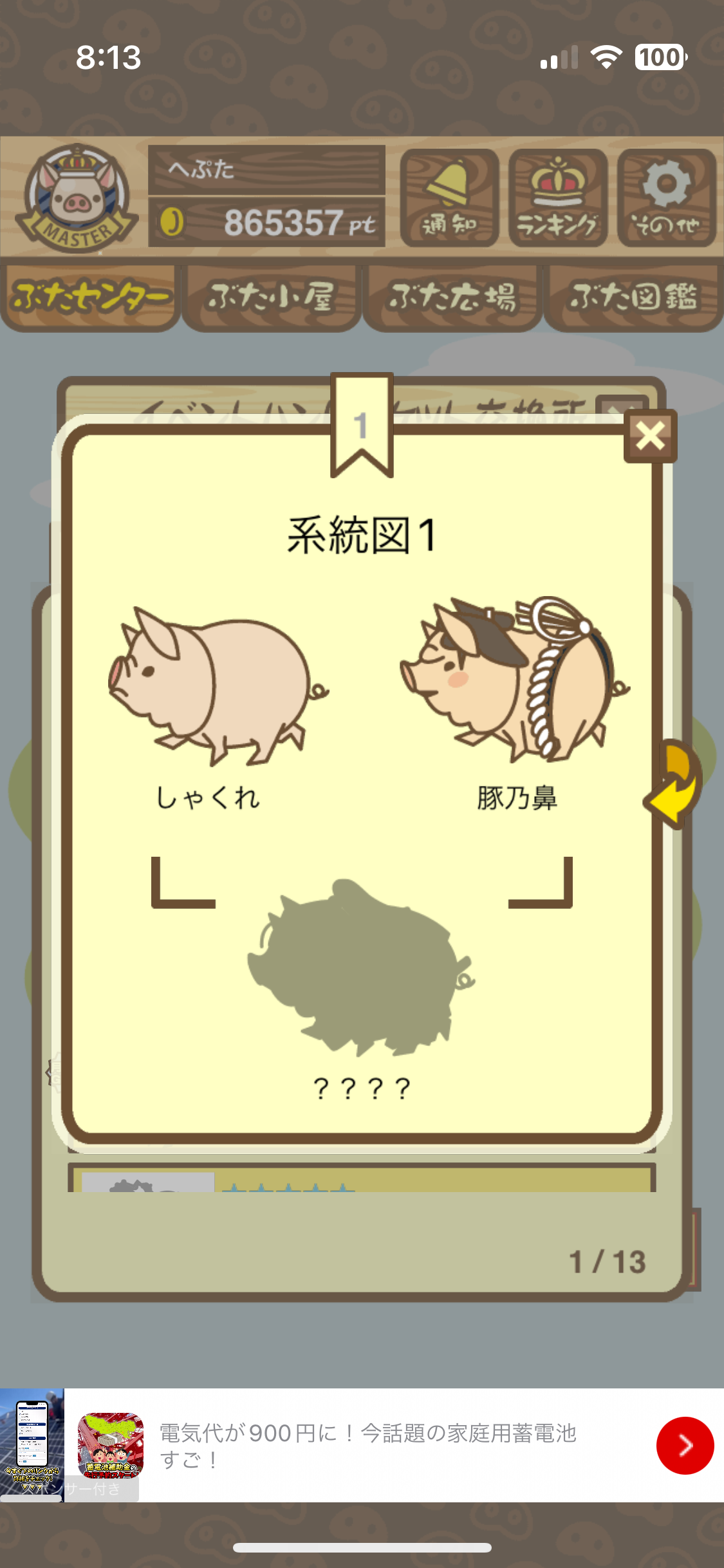 8500pt ピグキオ ⇒ 次男 × 真実の豚