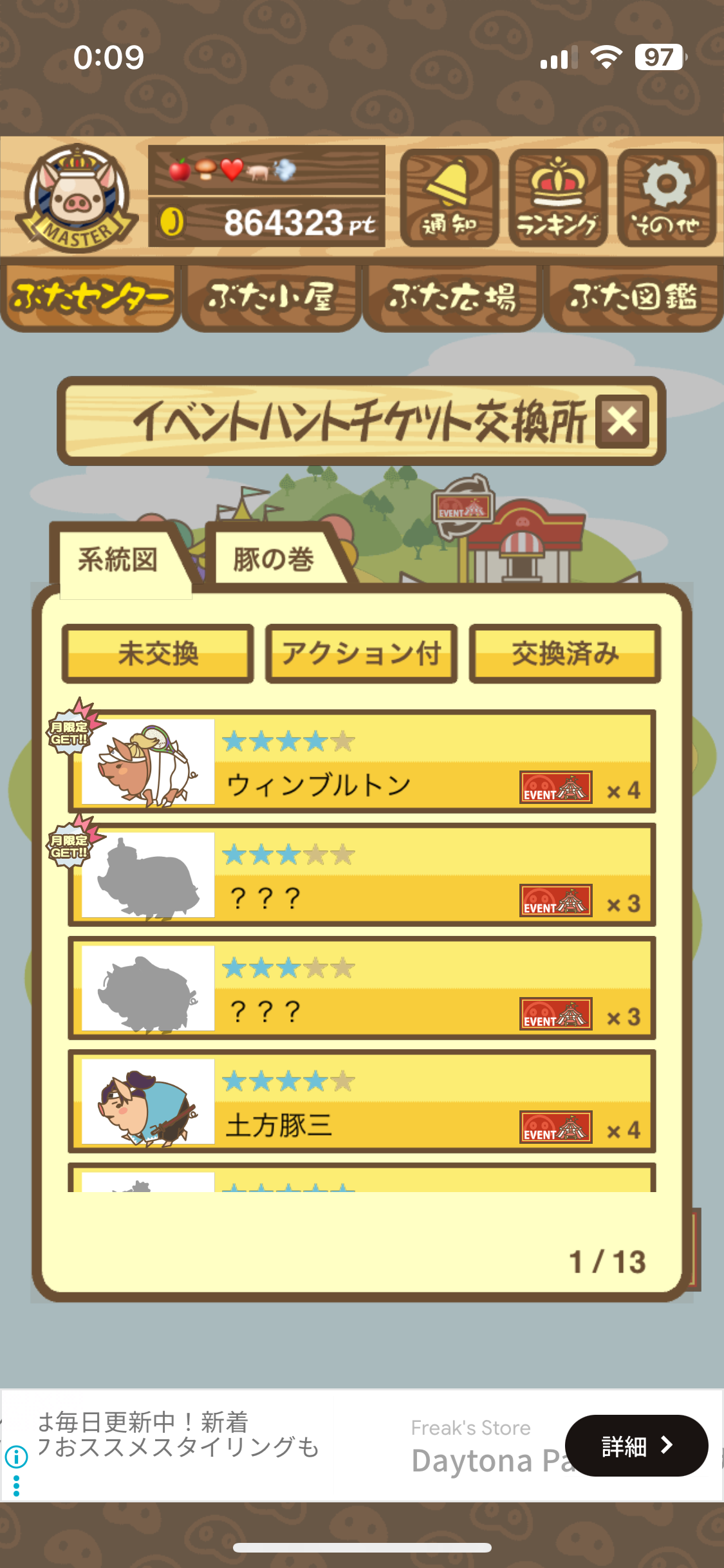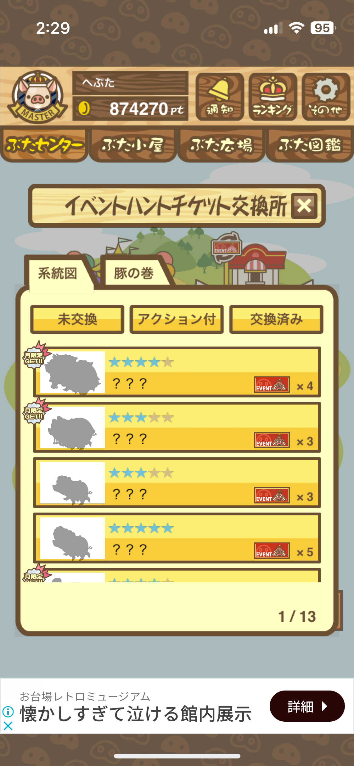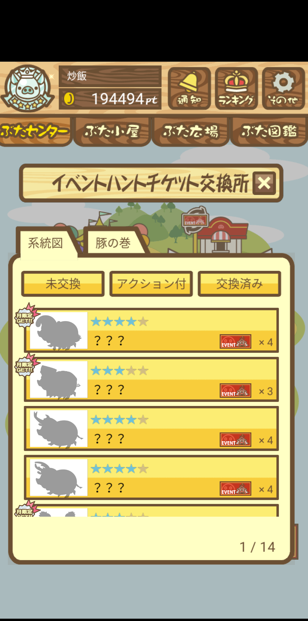 A2.ぶたセンター>子ぶたハント>イベントハントチケット交換所