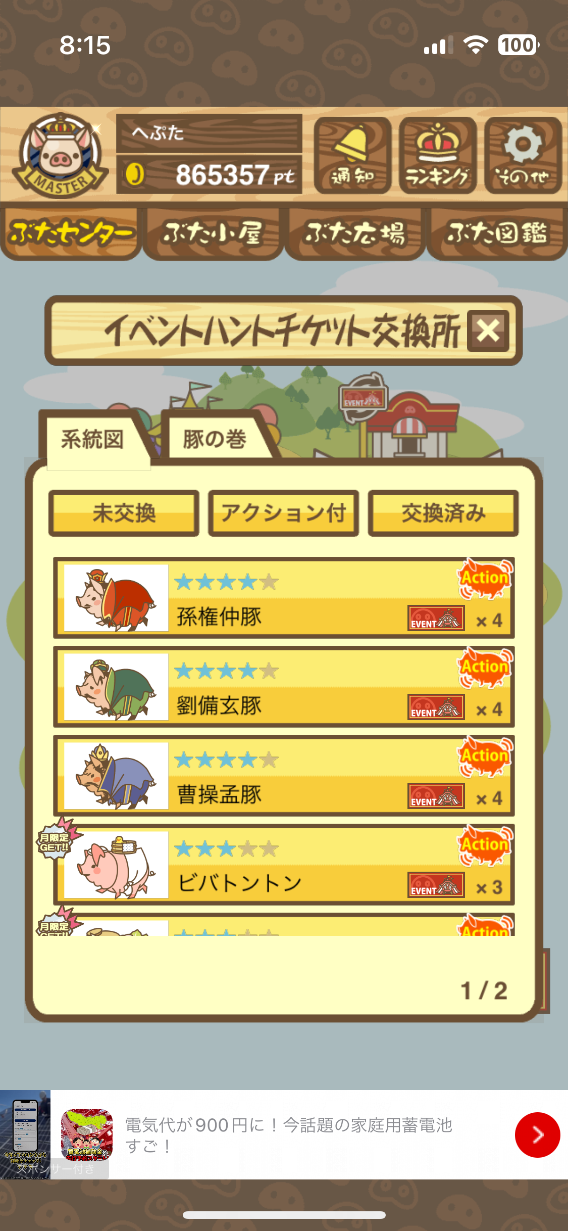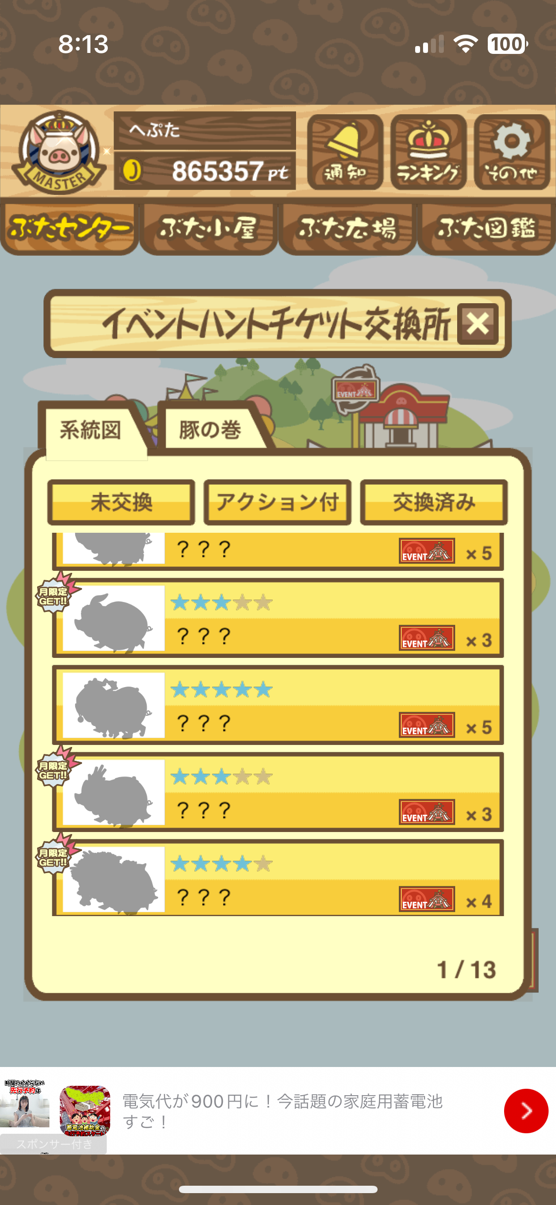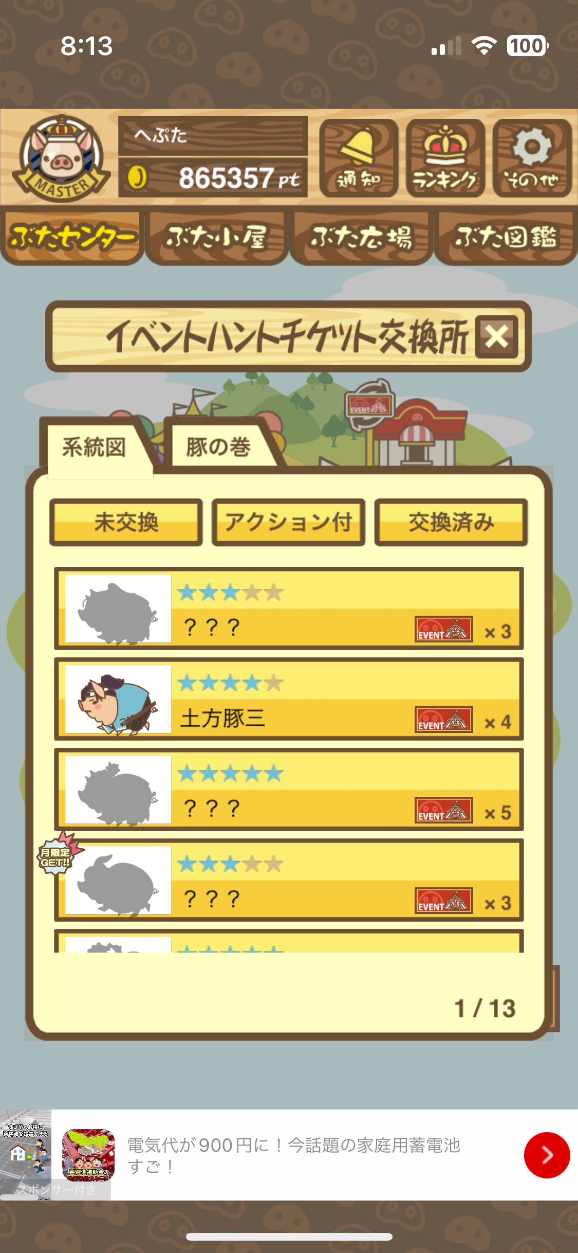 A2.ぶたセンター>子ぶたハント>イベントハントチケット交換所