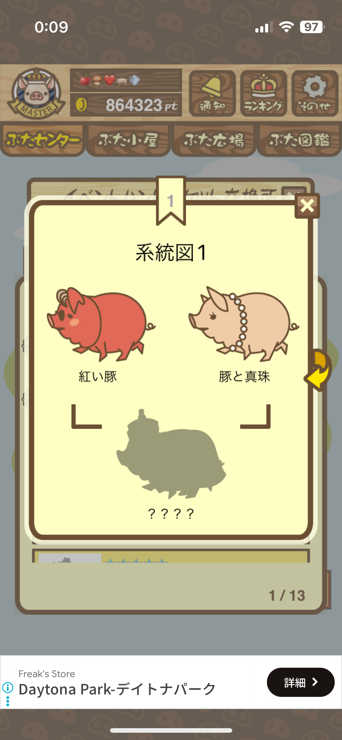 確かに3D版に存在するぶたなのに…という場合、過去の月限定のぶたかも。