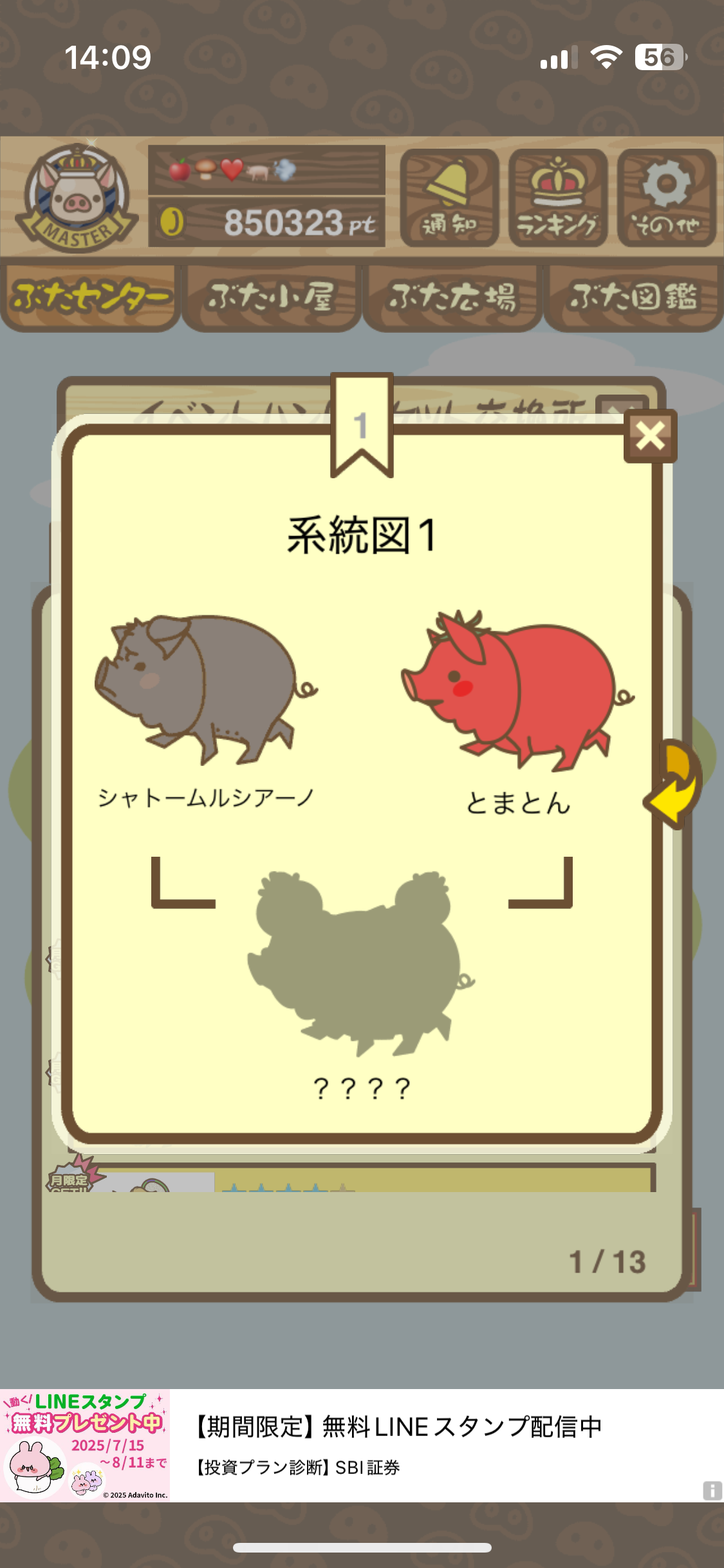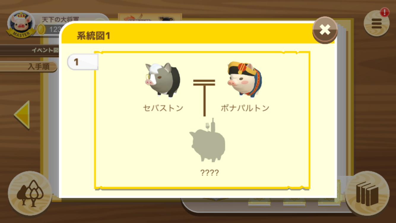 系統図を交換すれば追加条件などはなく、成豚後に一定確率アクションを行います。- 限定アクションについては ブリーディングクエスト ページを参照。