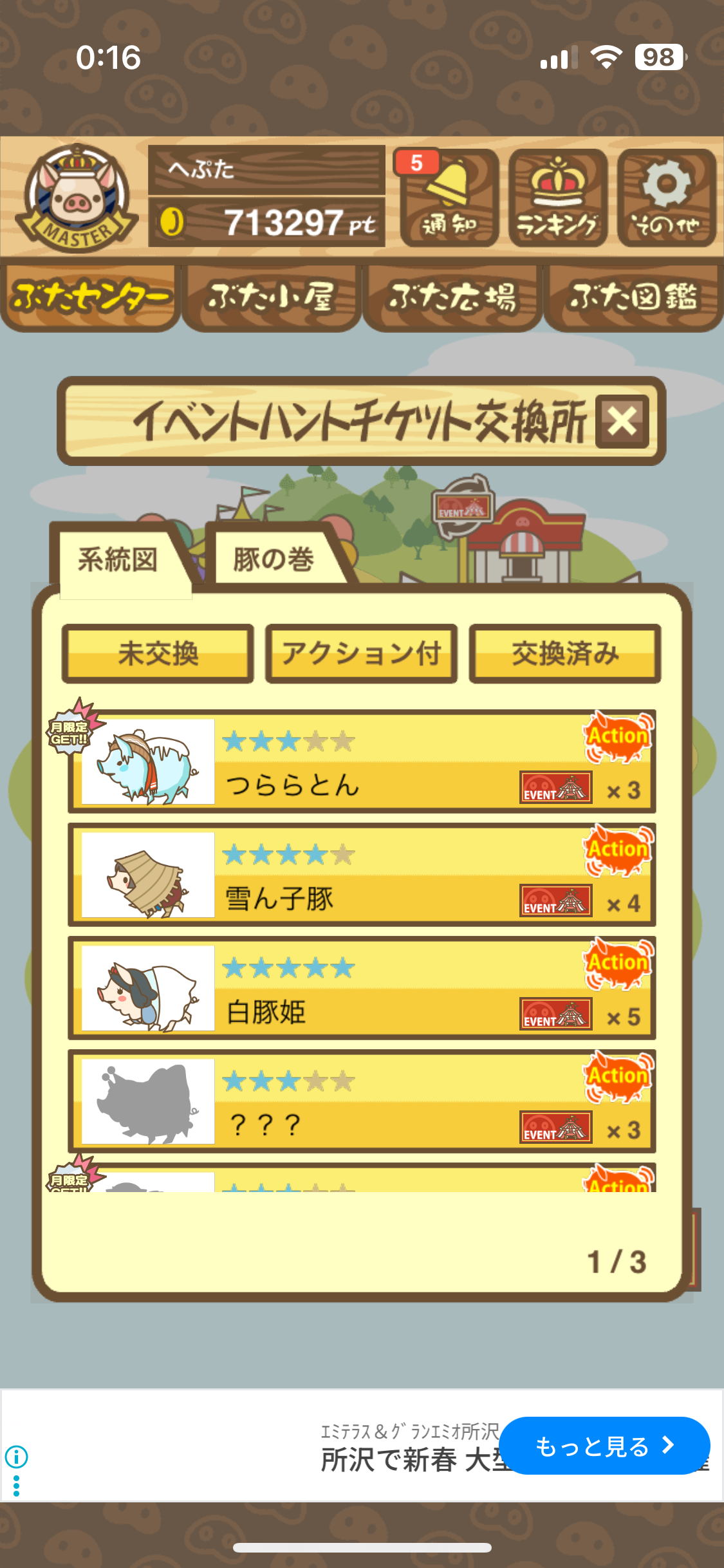 | 24 | ★4 | 風豚 | 4枚 | イノブタ | 蚊取り豚 | 23年03月 | 24年02月 |