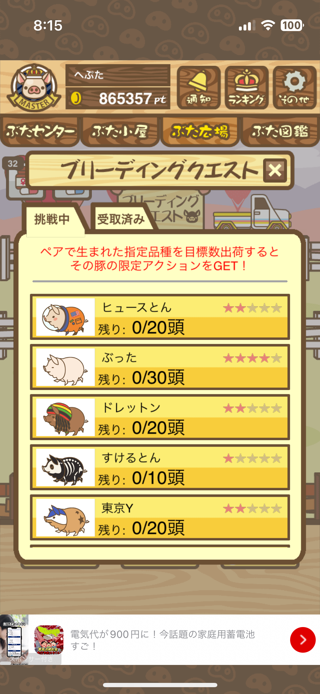 - ブリーディングクエスト と同じタイプの「限定アクション」を行うぶたです。