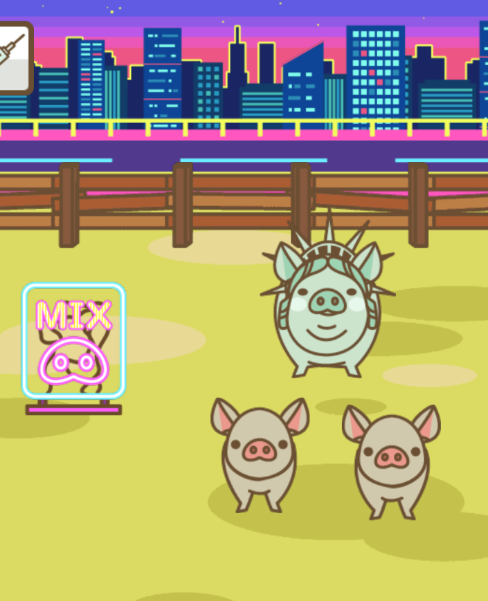 | MIX | 子豚時は茶色いが成豚になると緑色にな る。たいまつと銘板が行方不明。見つけ たらご一報ください。 |