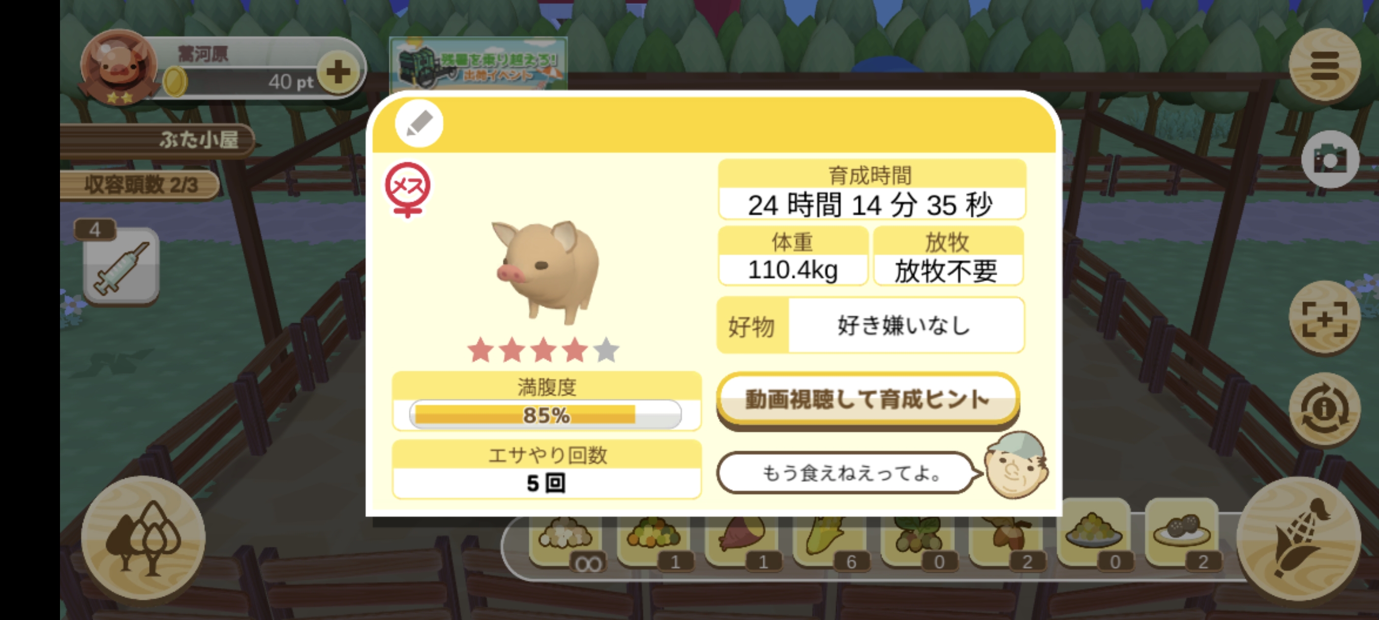 | 好物 | 好き嫌いなし | 放牧 | 放牧不要 |