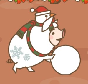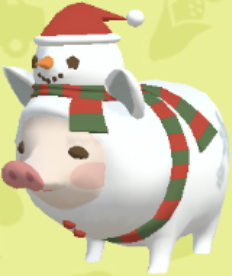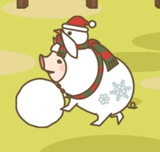 | 3D | ホワイトクリスマスに憧れている ロマンチストな豚。雪だるまの格 好をしているが寒さは苦手なので カイロが手放せない。12月の豚。 |