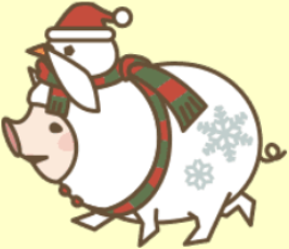 | MIX | ホワイトクリスマスに憧れている豚。そ の割に寒さが苦手でカイロをこっそりい くつか隠し持っている。12月の豚。 |