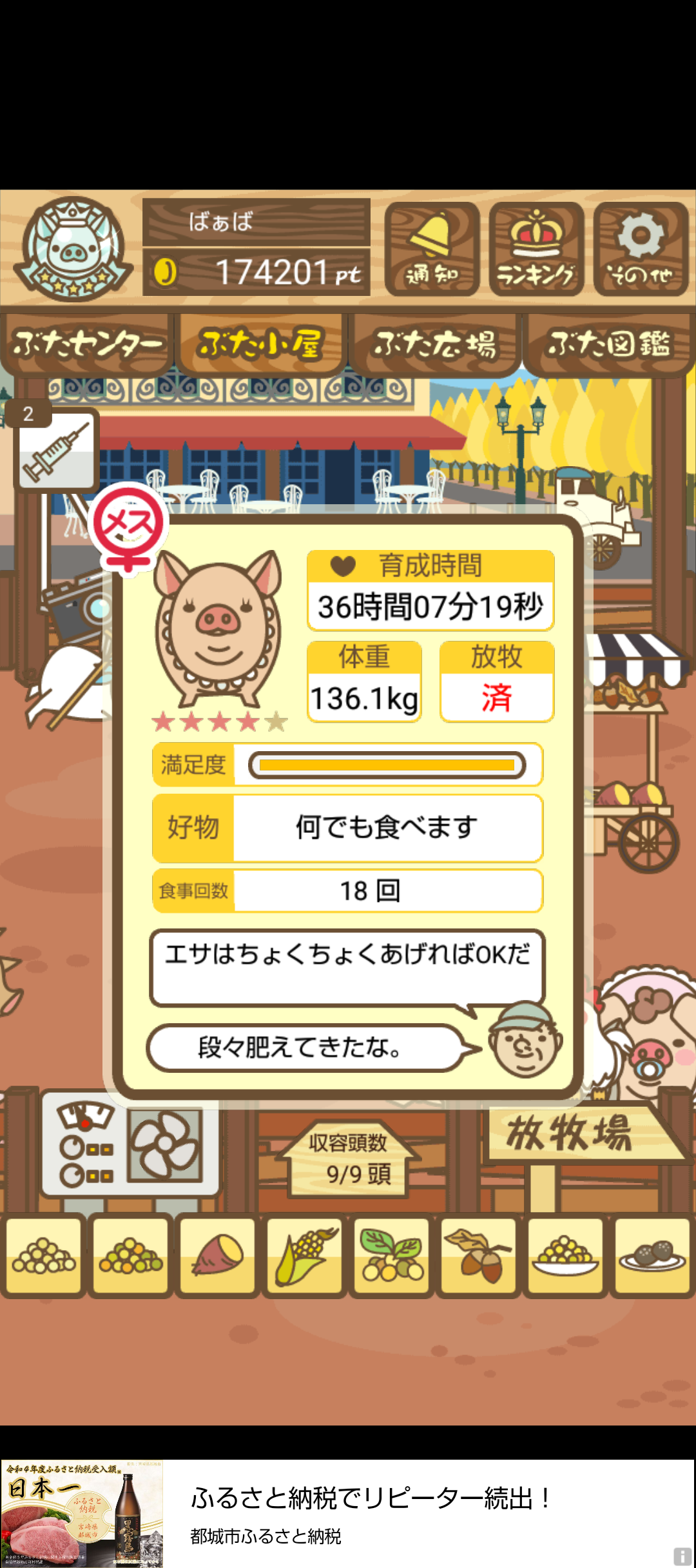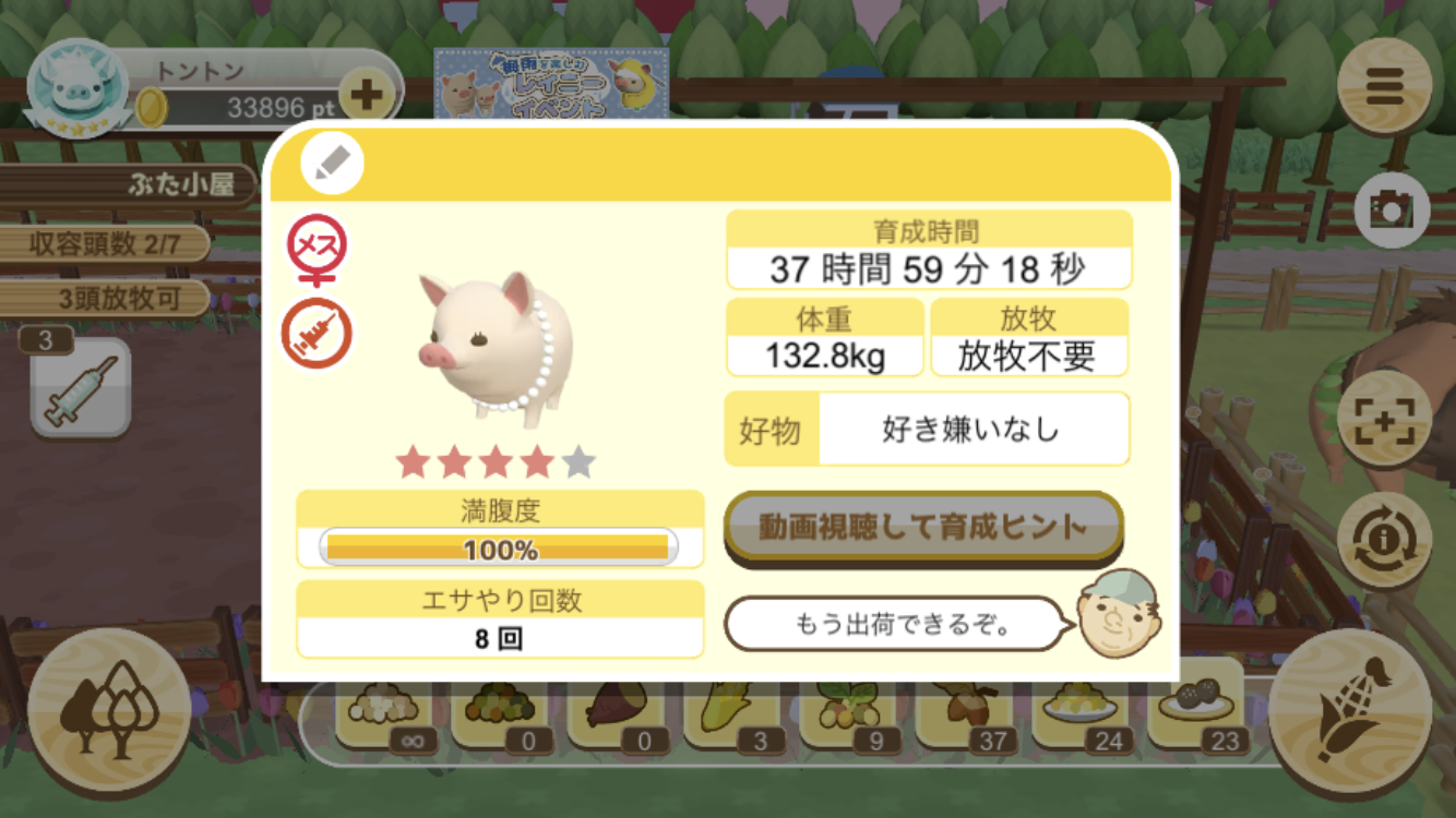 エサ1回だけでもちゃんと成豚になってくれるのも嬉しい。