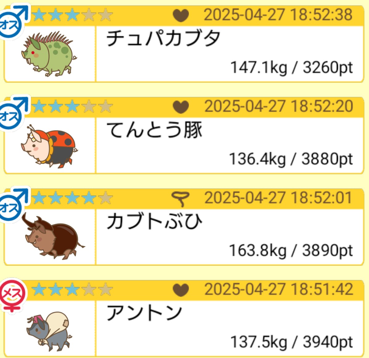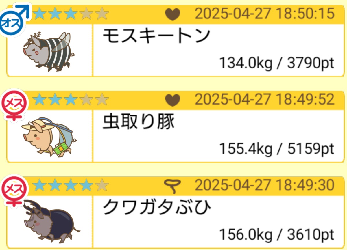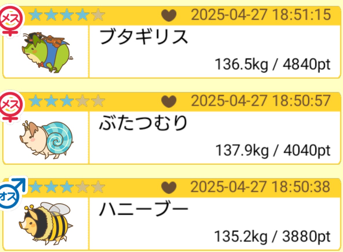 オーナー名(頭2文字):はる 1番重い豚:かぶとブヒ [sTfy15bSsik]