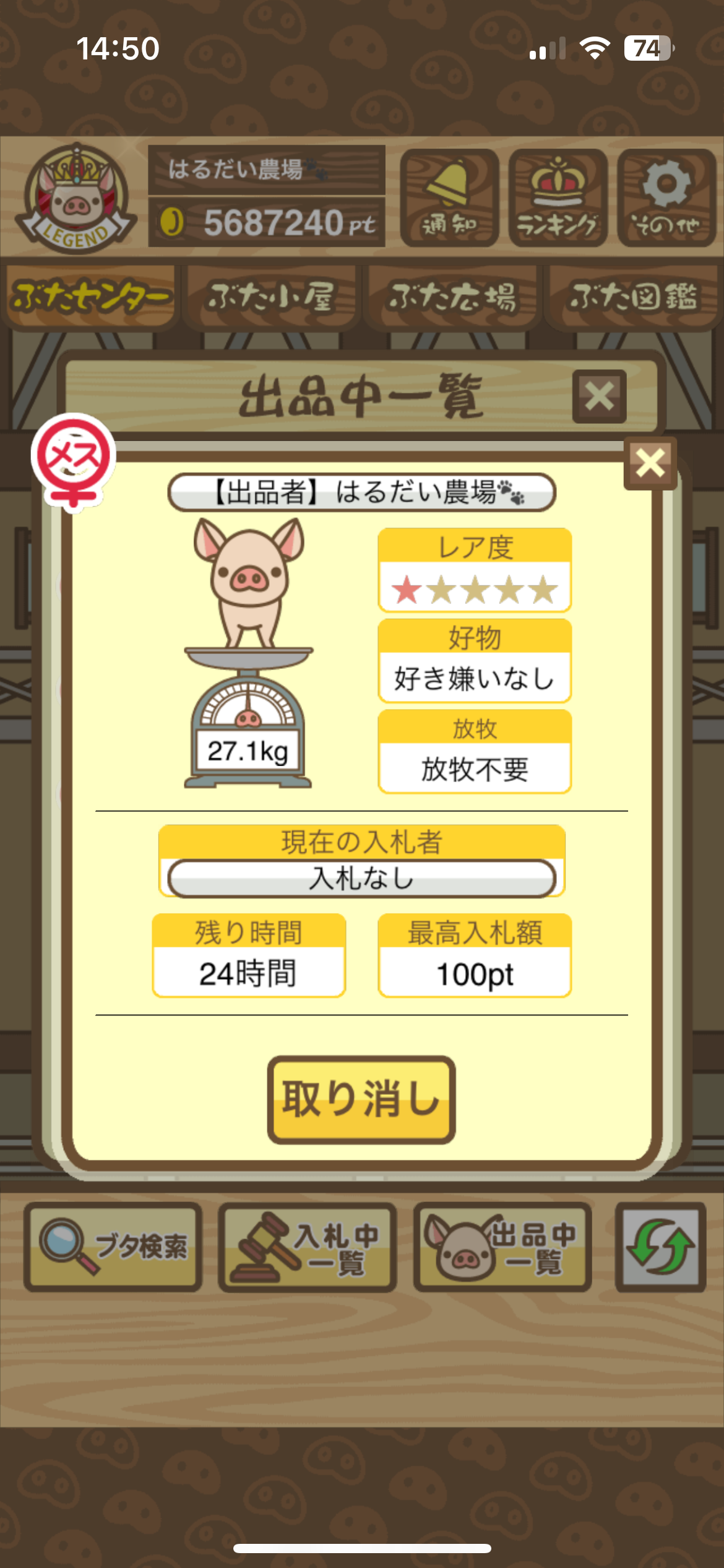 オークションに適当なぶた(ぶたセンターCランク)を出品したあと、コメント欄に出品したぶたのスクショを投稿してください。