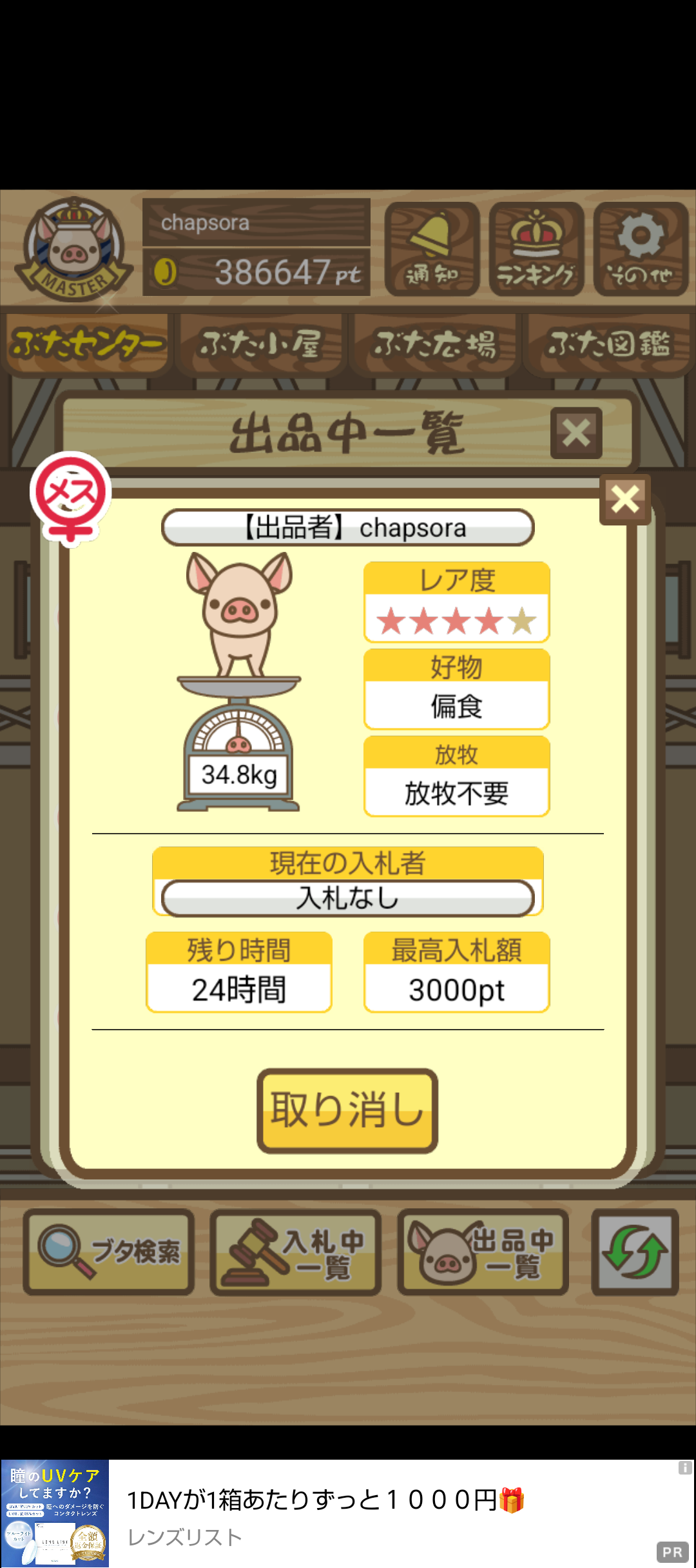 オークションに適当なぶたを出品したあと、詳細画面のスクショを投稿してください。