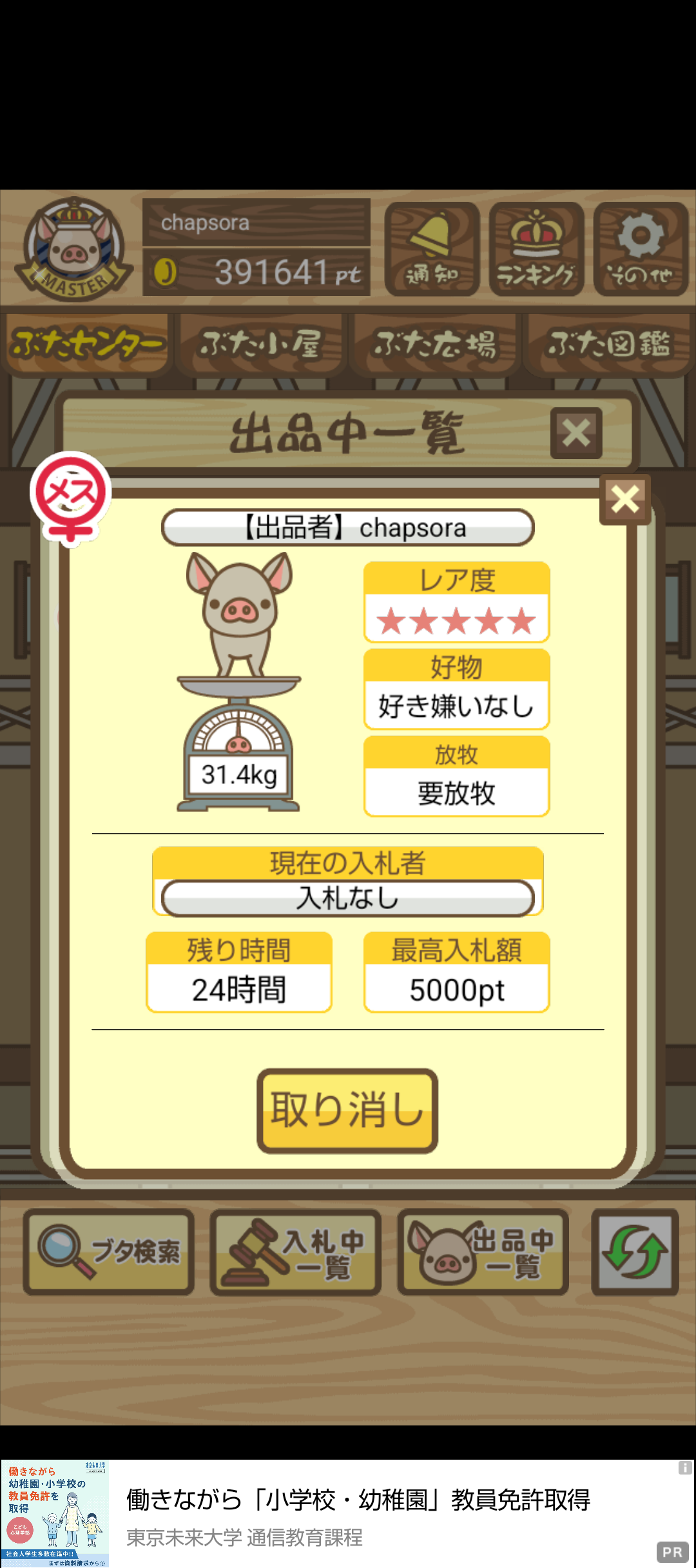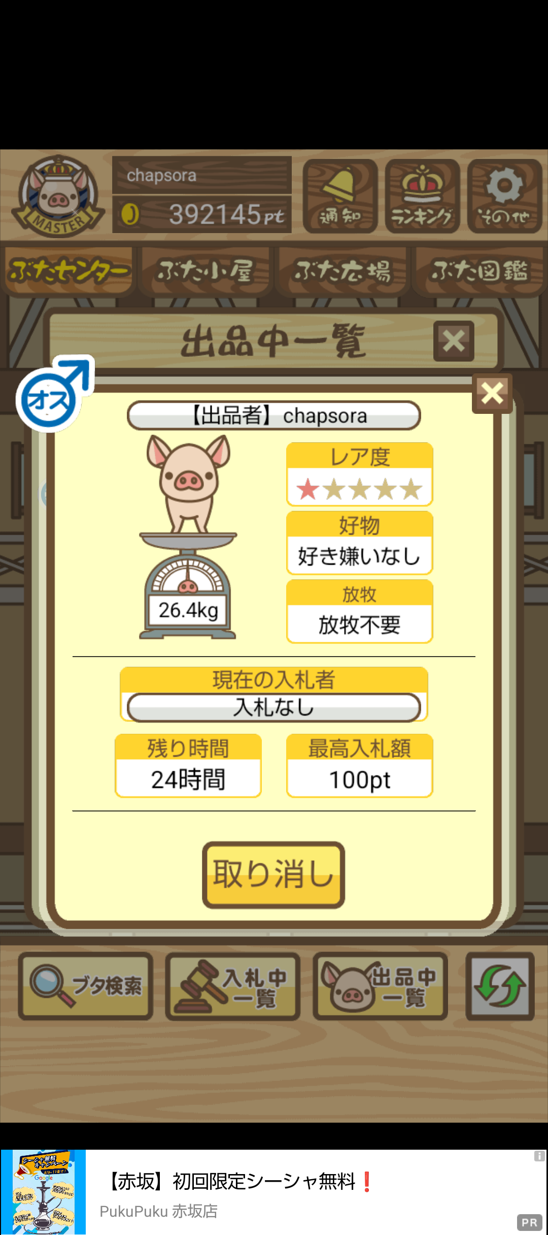 ・参加条件:オークションにぶたの出品ができる方(ptの受け渡しに使います)
