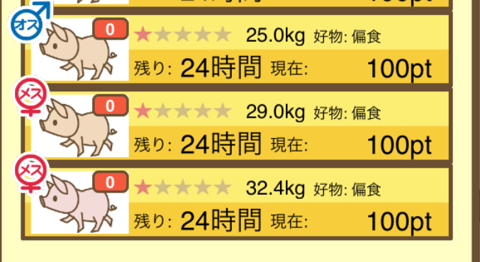 ・ブリーディングの親は、子が持っている属性と同じ属性のぶたのことが多いです。