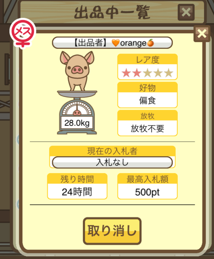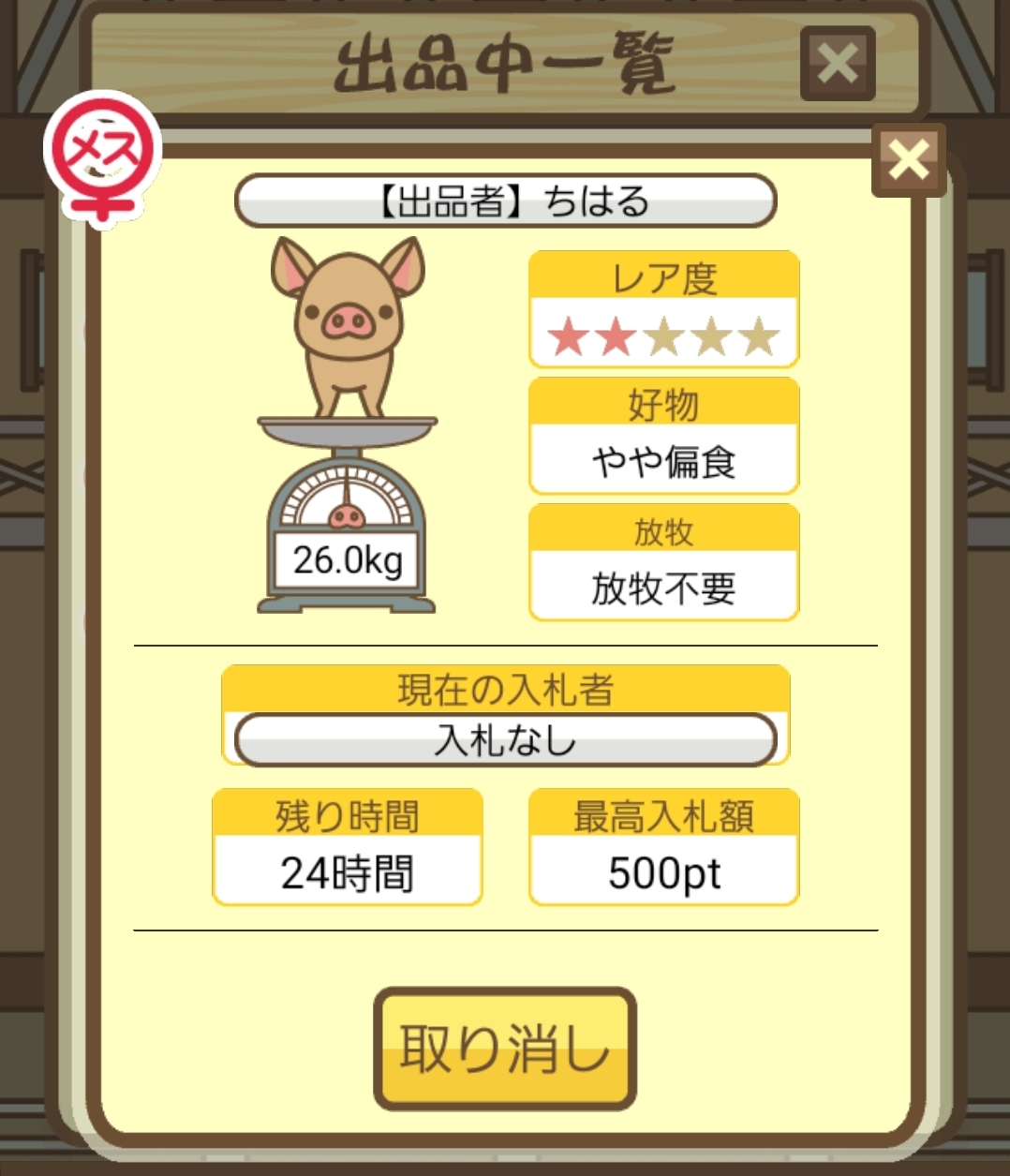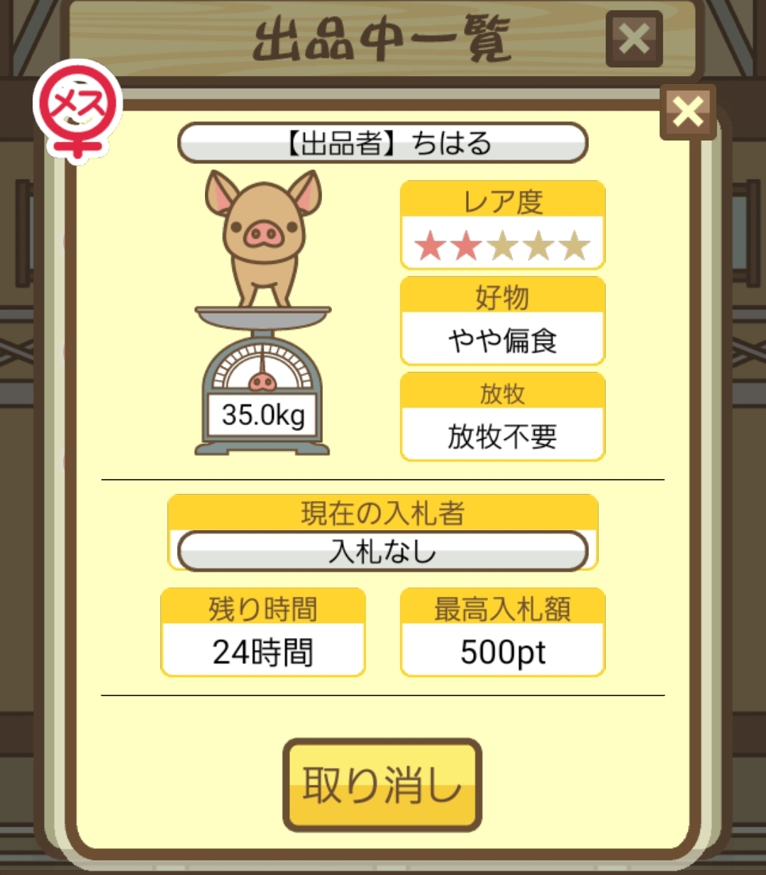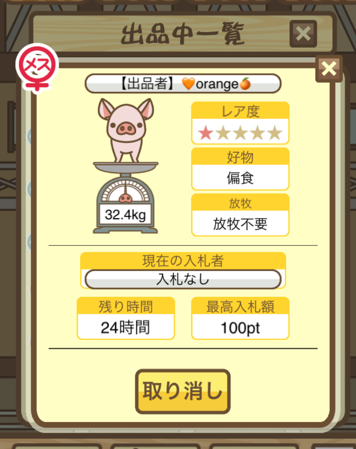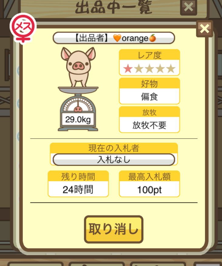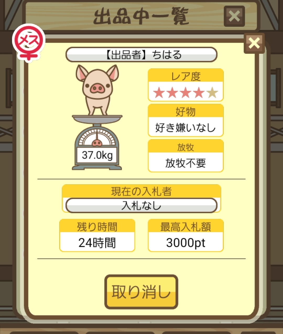 オークションに適当なぶたを2頭くらい出品したあと、詳細画面のスクショを投稿してください。