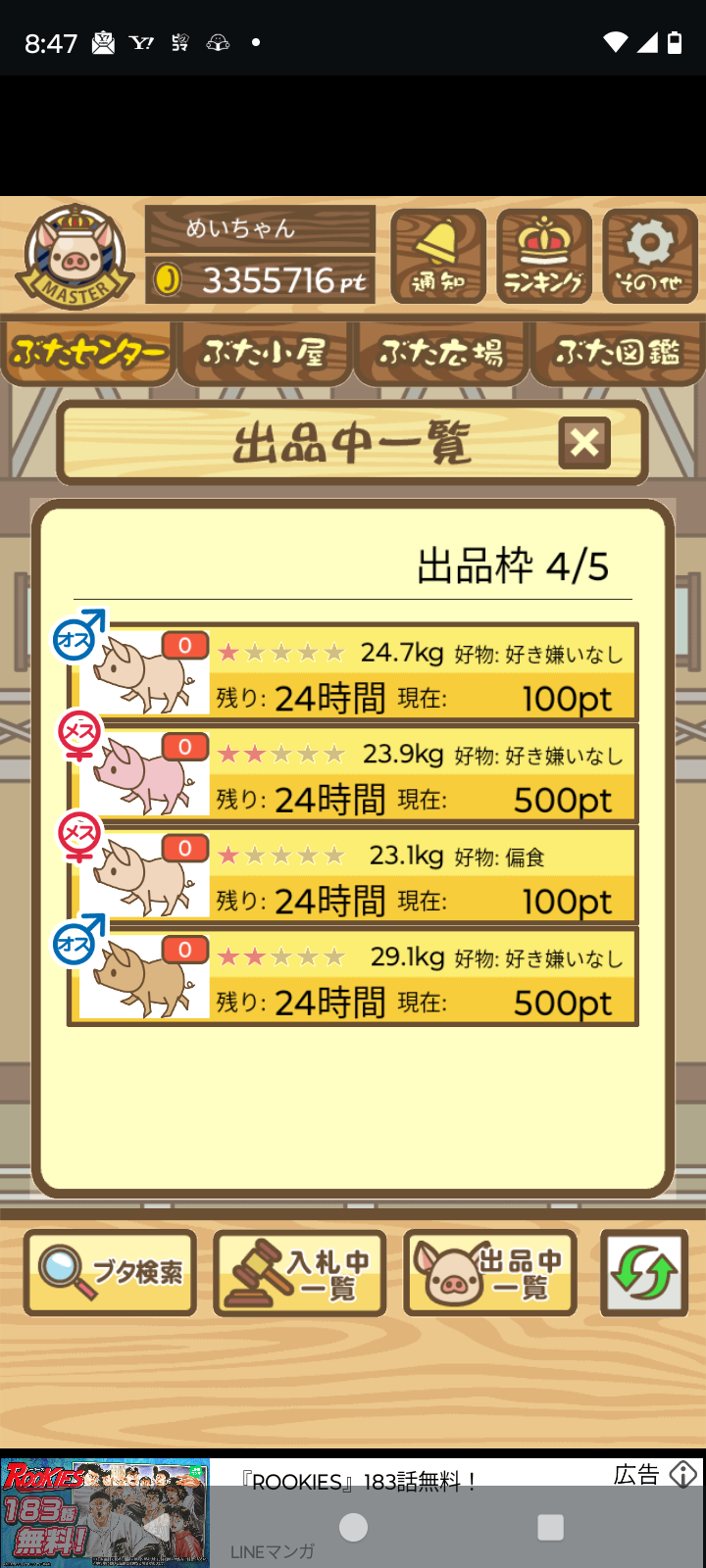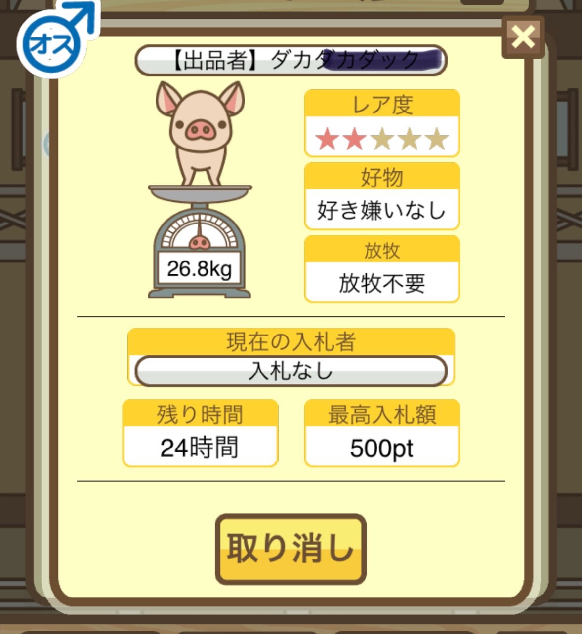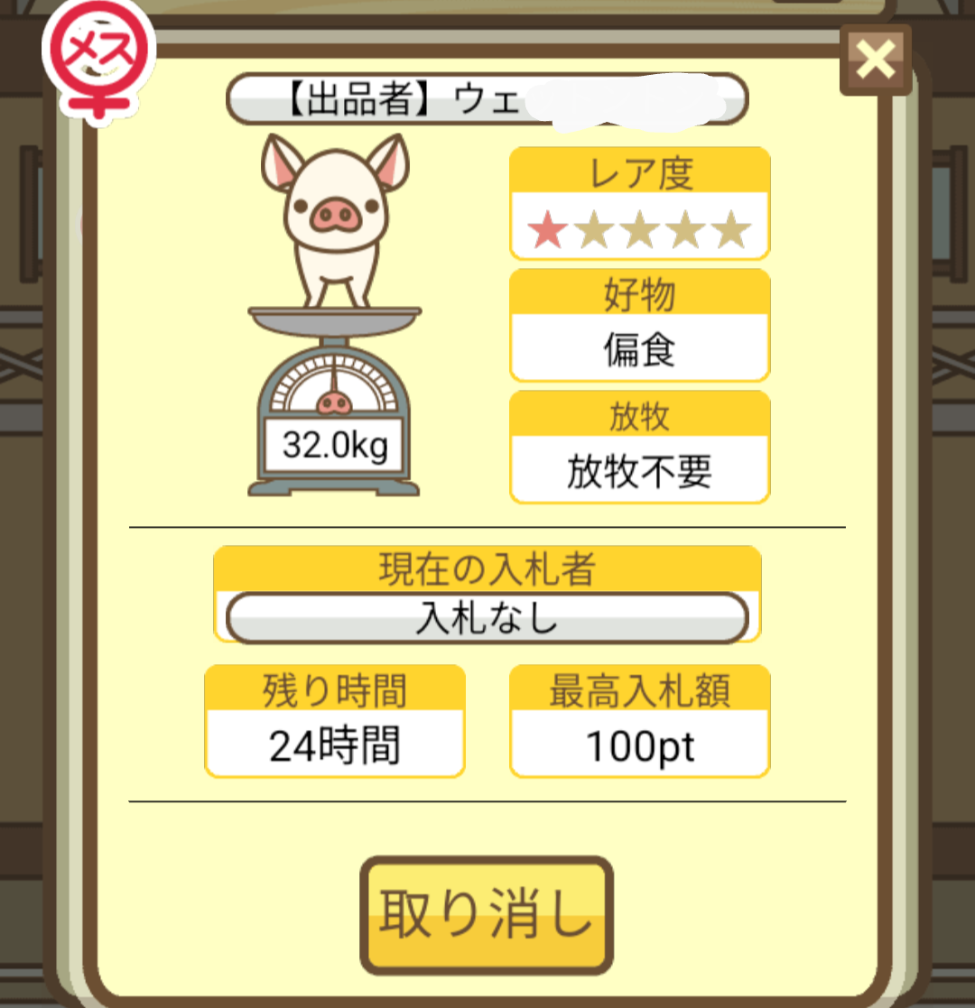 オークションに適当なぶた(ぶたセンターCランク)を1頭出品したあと、コメント欄に出品したぶたのスクショを投稿してください。