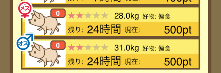 ・ブリーディングの親は、子が持っている属性と同じ属性のぶたのことが多いです。