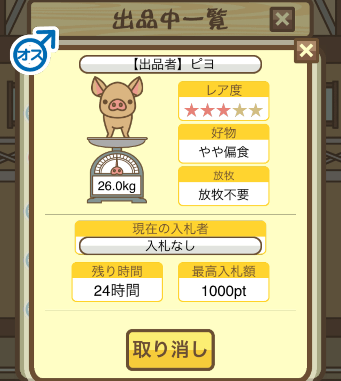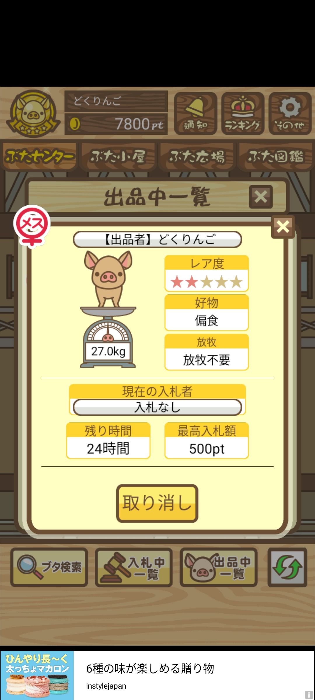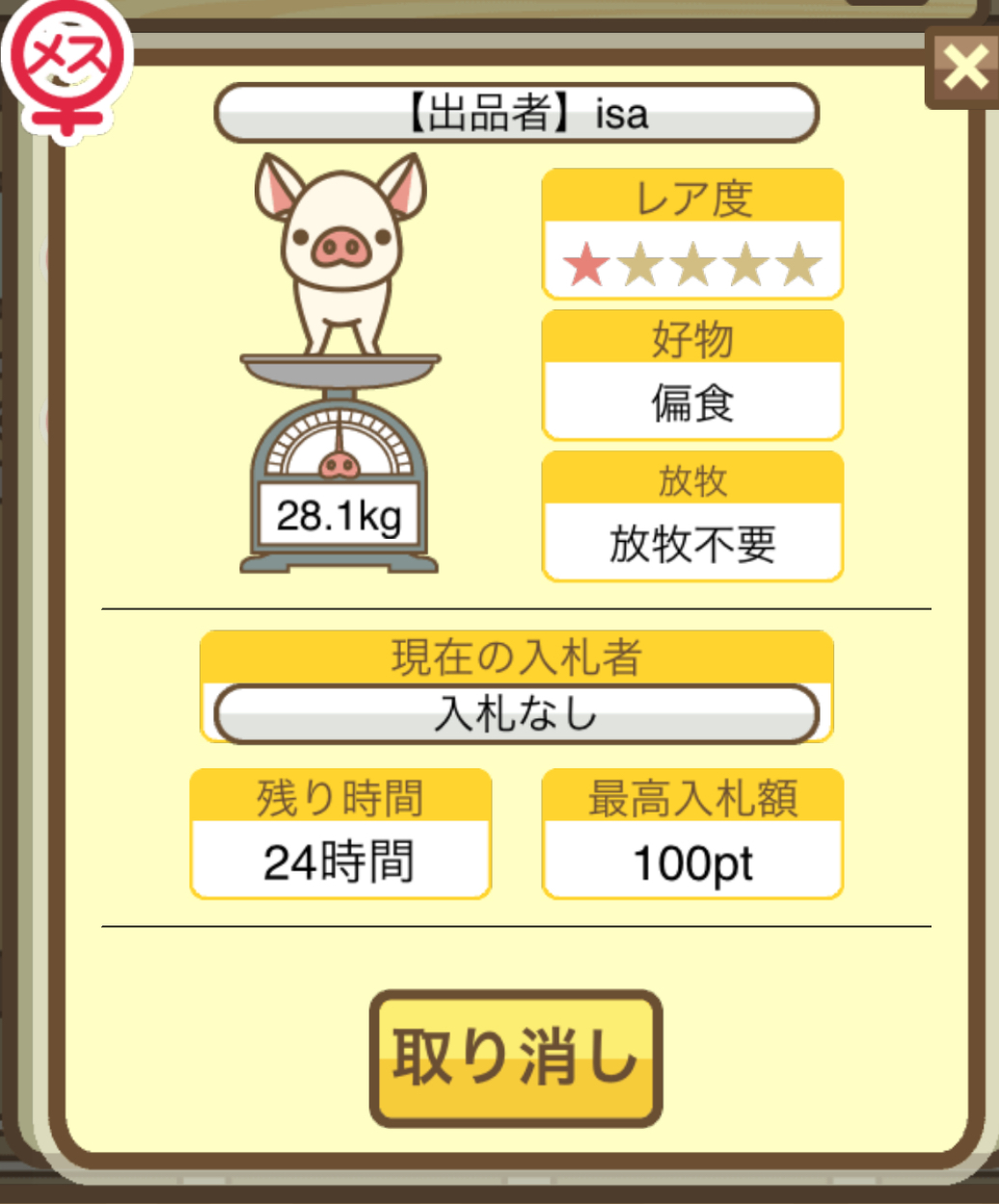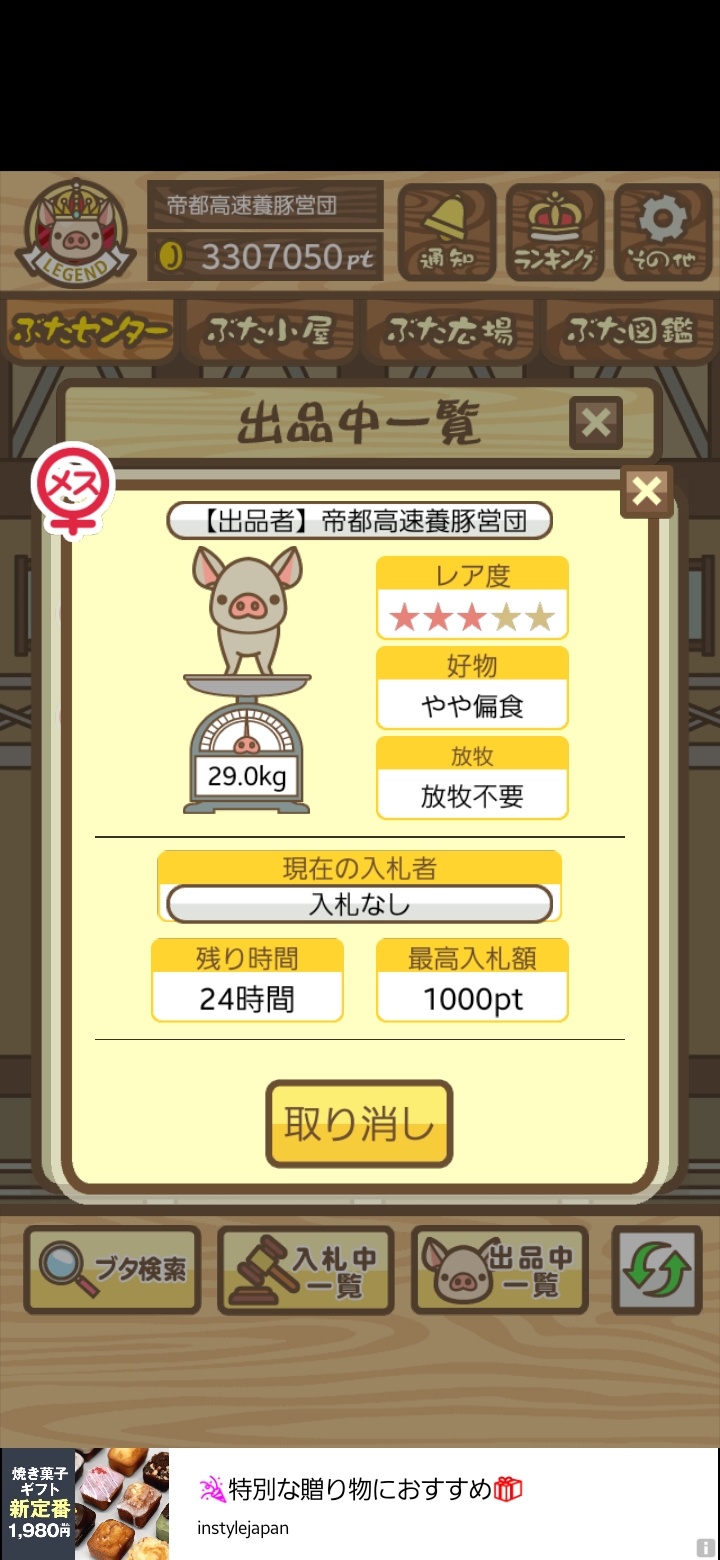 オークションに適当なぶたを2頭くらい出品したあと、詳細画面のスクショを投稿してください。