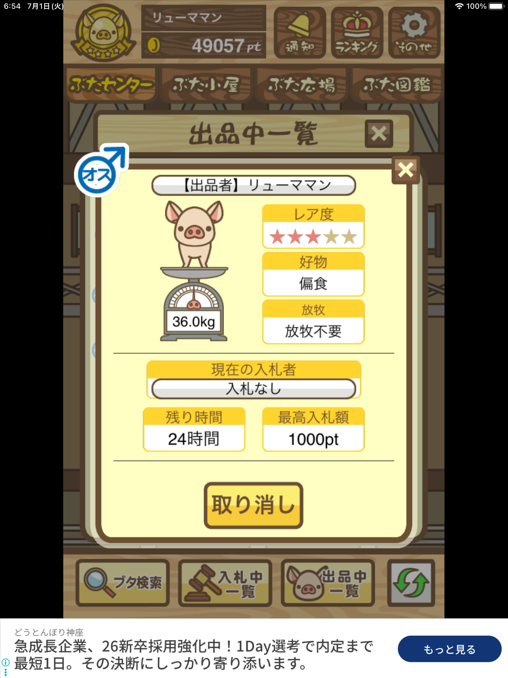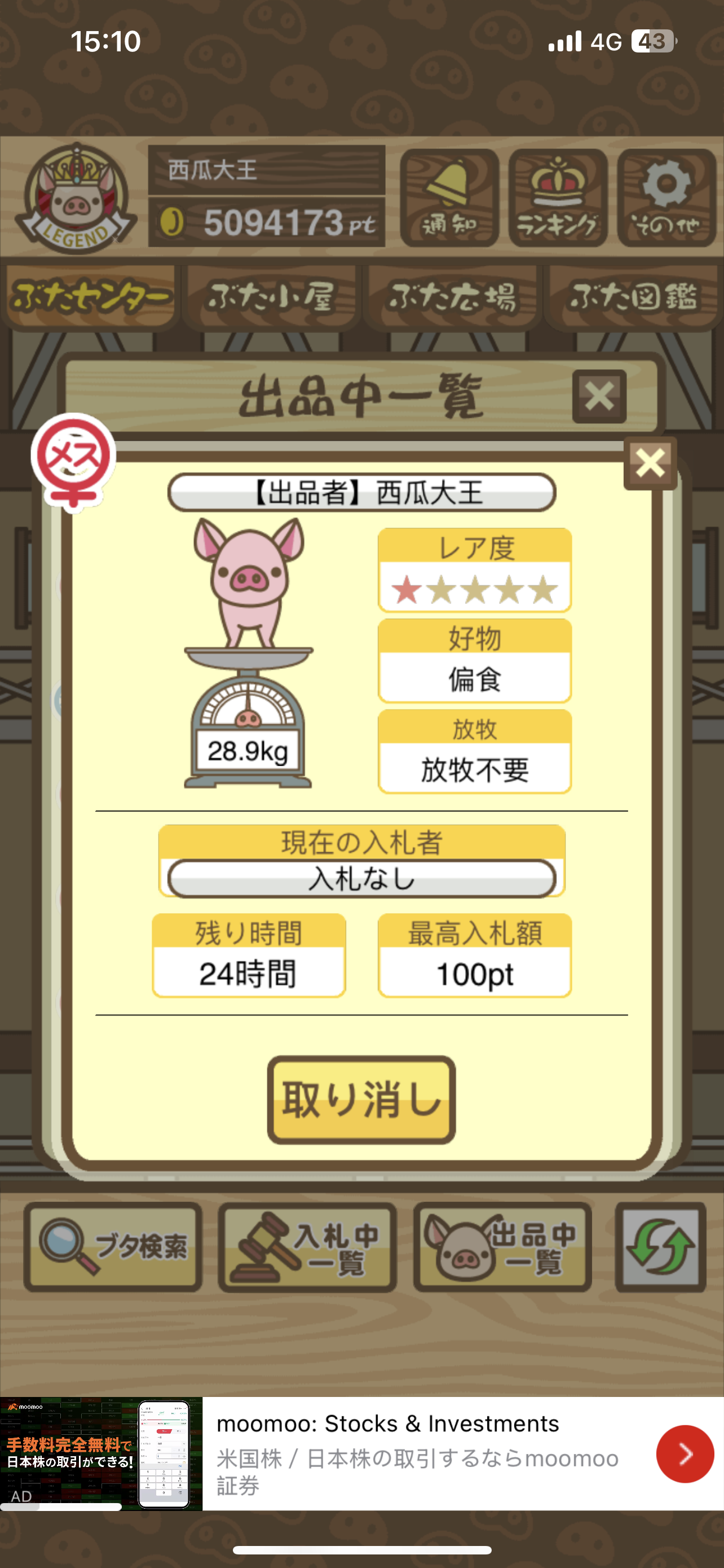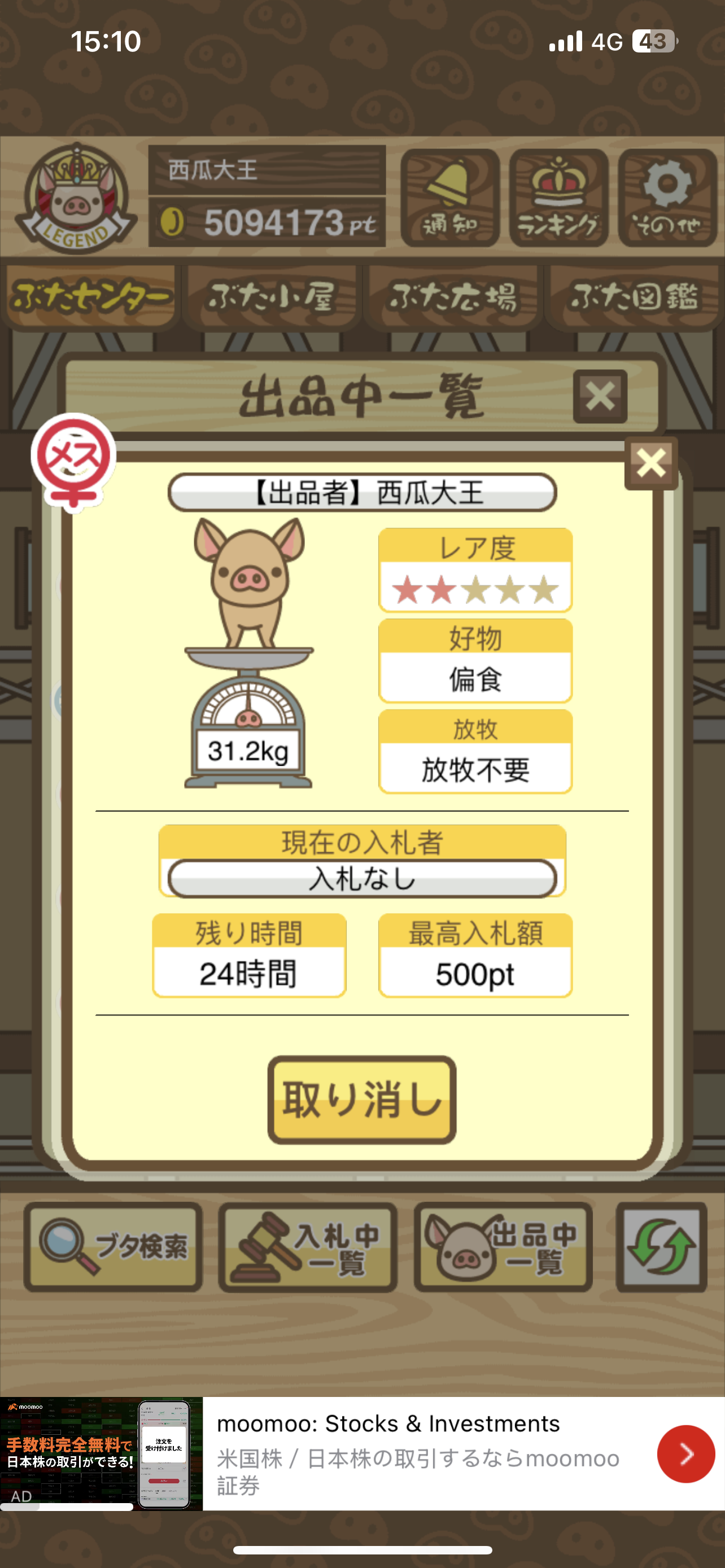 オークションに適当なぶたを2頭くらい出品したあと、詳細画面のスクショを投稿してください。