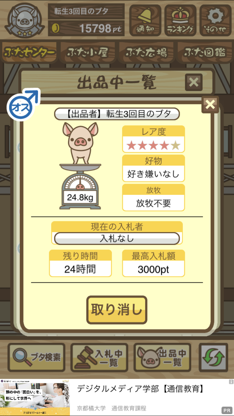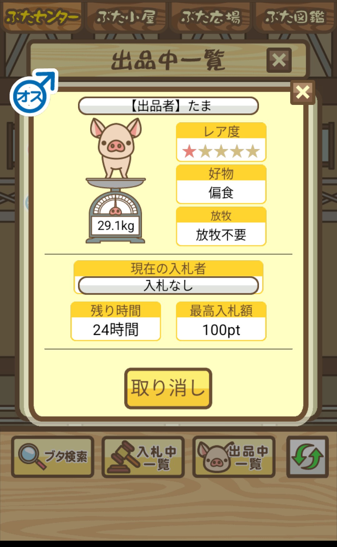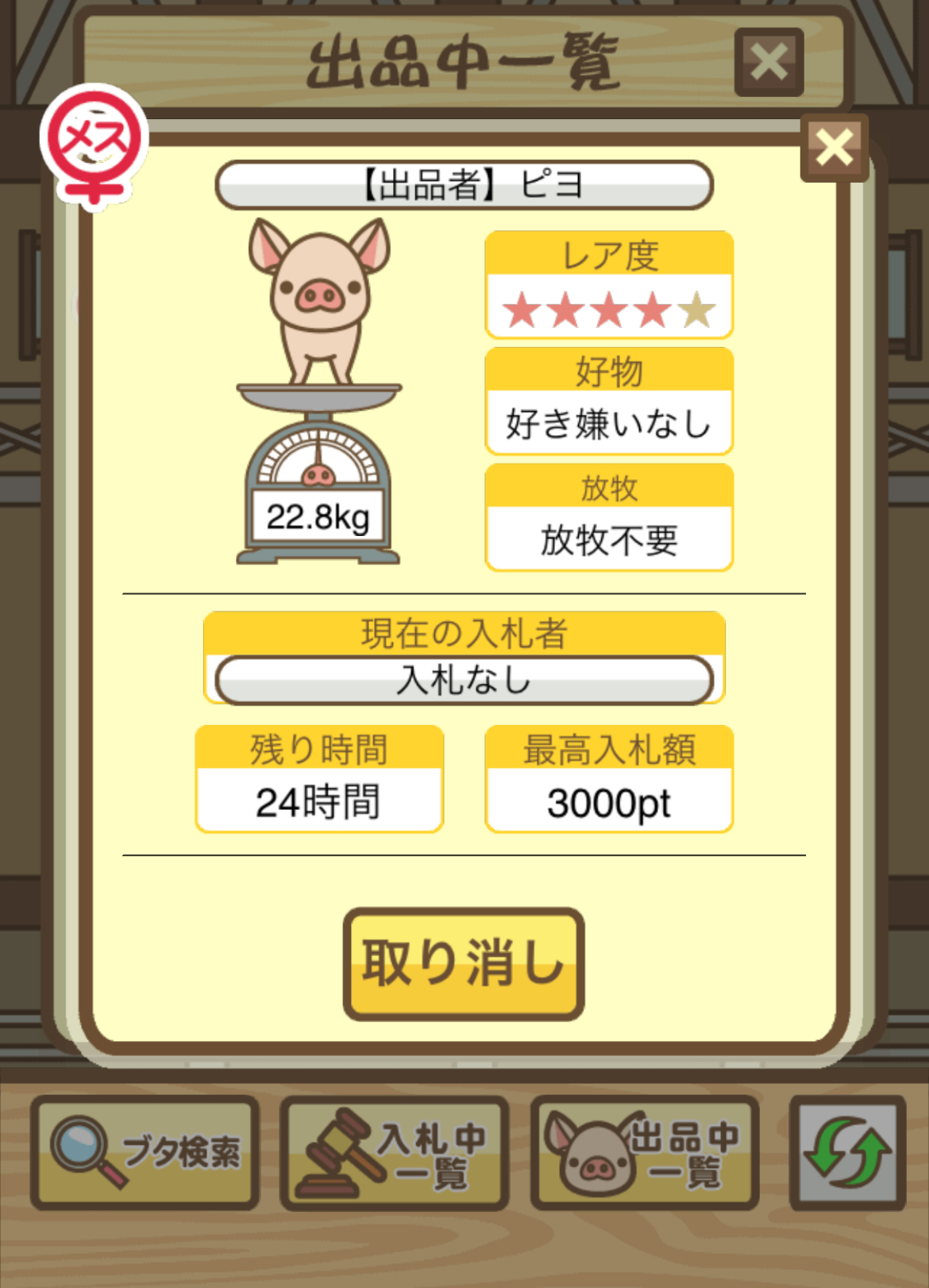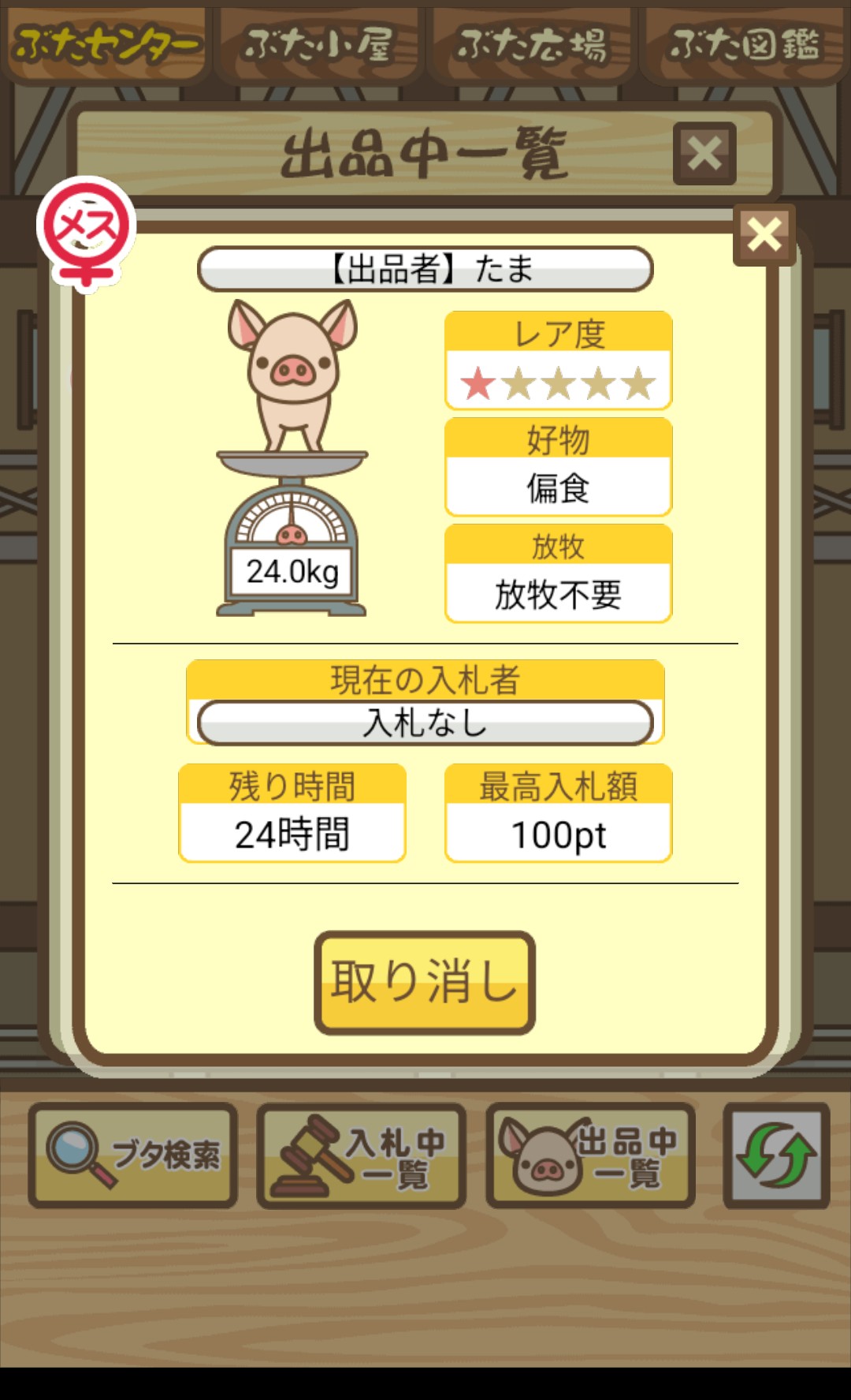 オークションに 特定のぶた を2頭くらい出品したあと、詳細画面のスクショを投稿してください。