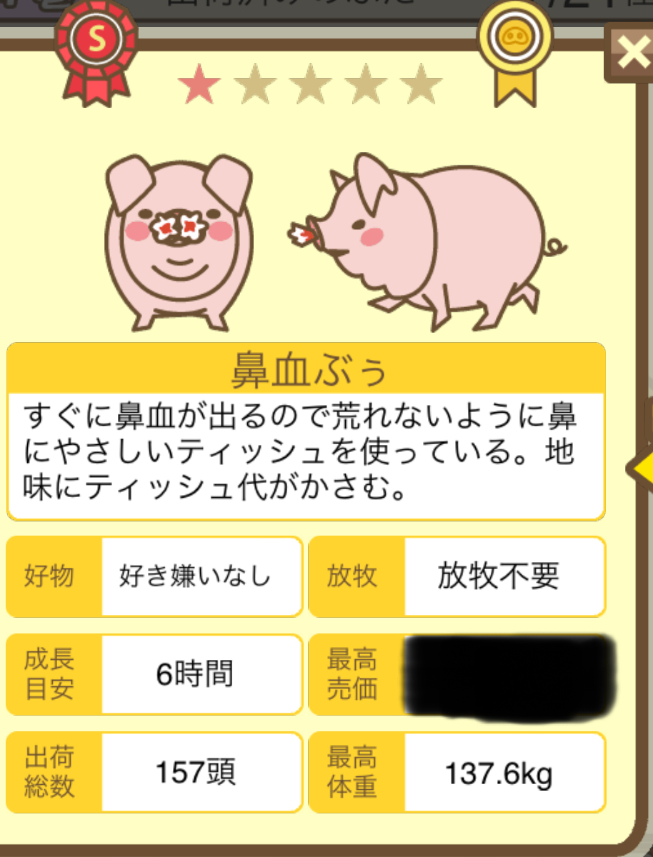| レア度 | ★1 | 子ぶた色 | ピンク |